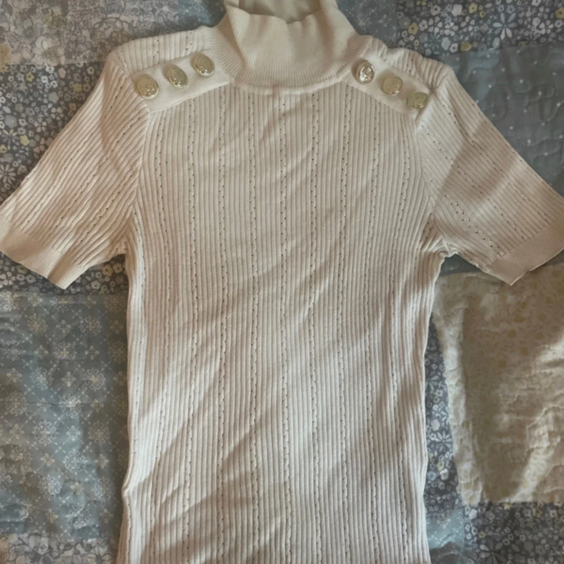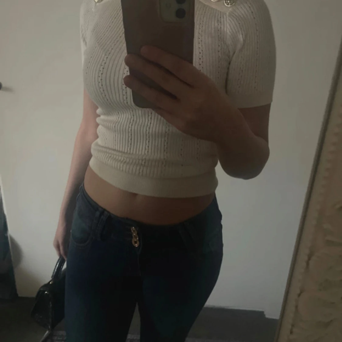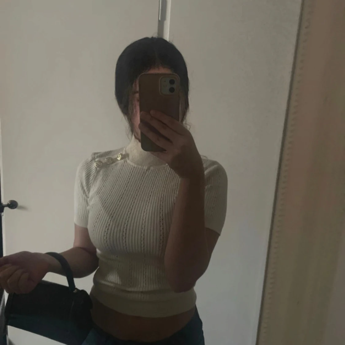 Vit snygg polotopp med guld knappar. Perfekt för en chic och elegant look. Passar till allt✨