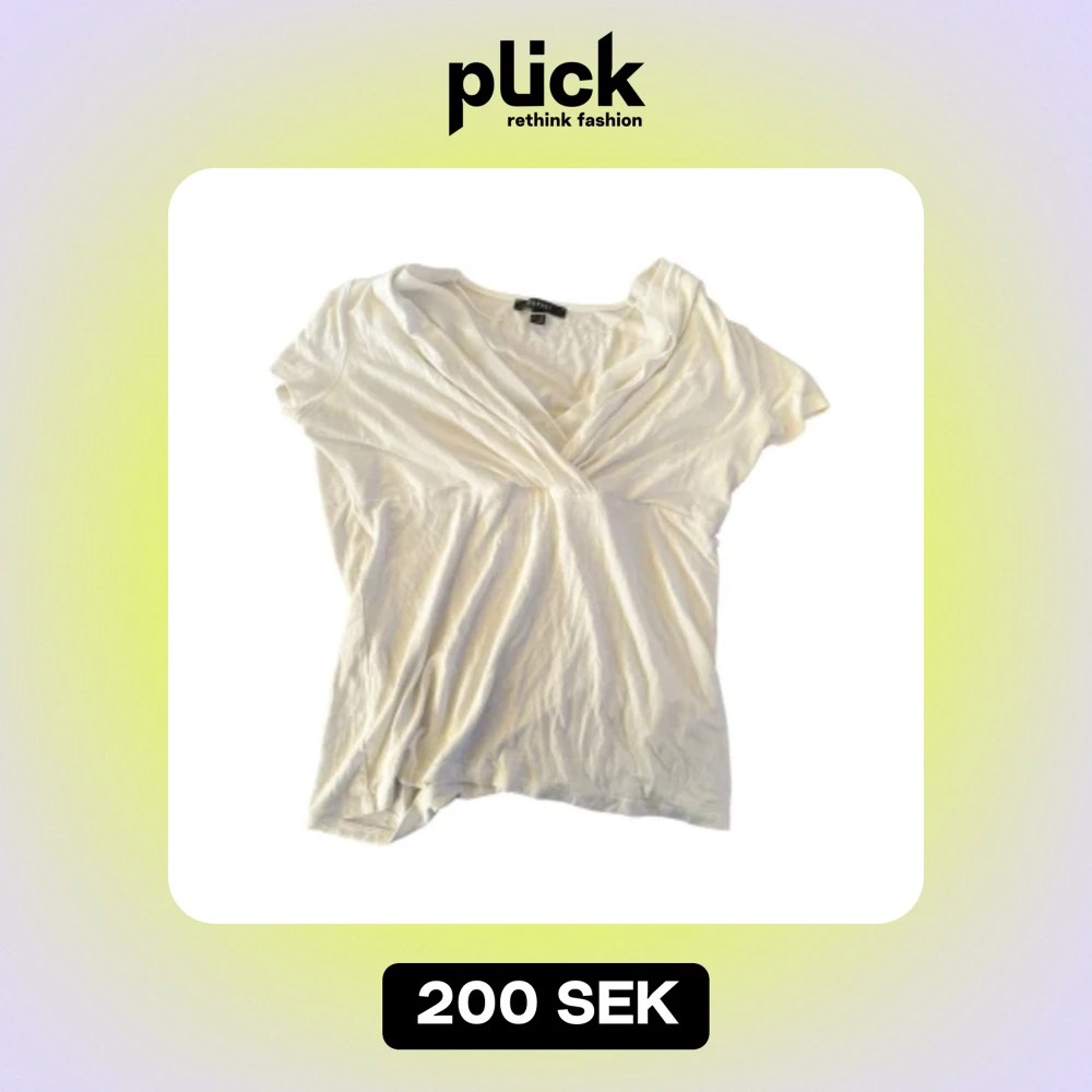 Y2k vit kortärmad topp från esprit, älskar den men får ingen användning för den 💋köpt på humana, står storlek xl men väldigt väldigt liten o skulle säga att det egentligen är en M?