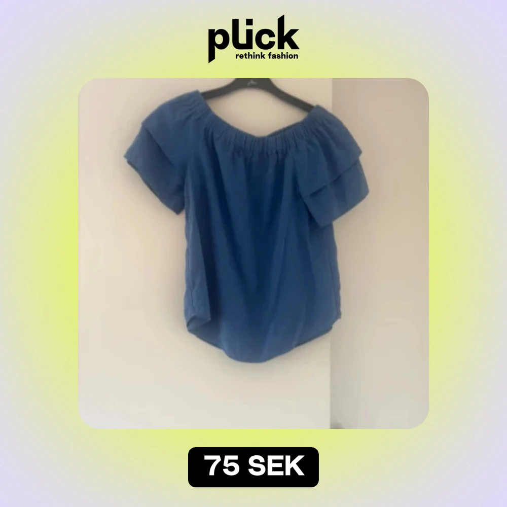 Säljer en superfin blå offshoulder topp. Den har korta ärmar och en luftig passform, perfekt för sommardagar. Materialet känns lätt och bekvämt mot huden.