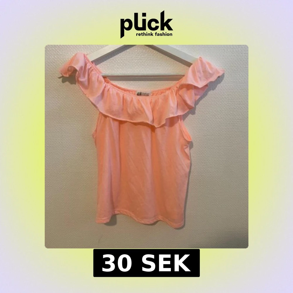 Säljer en söt topp från H&M med volang längs halsringningen. Perfekt för varma dagar och ger en somrig känsla. Tunn och mjuk bomullskvalitet.