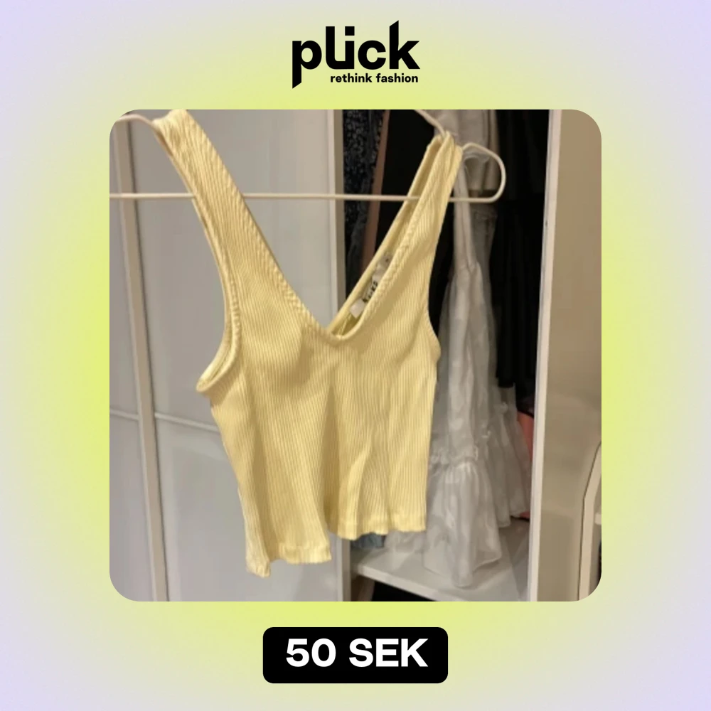 Liten gul topp. Är storlek M men kan bäras från storlek XS till M.