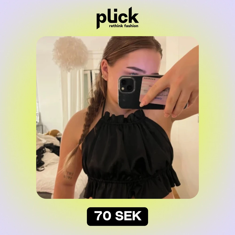Svart silkes topp från GinaTricot Storlek 38 men funkar nog 36 också Justerbar i snörena baktill Öppen i ryggen Använd 1 gång