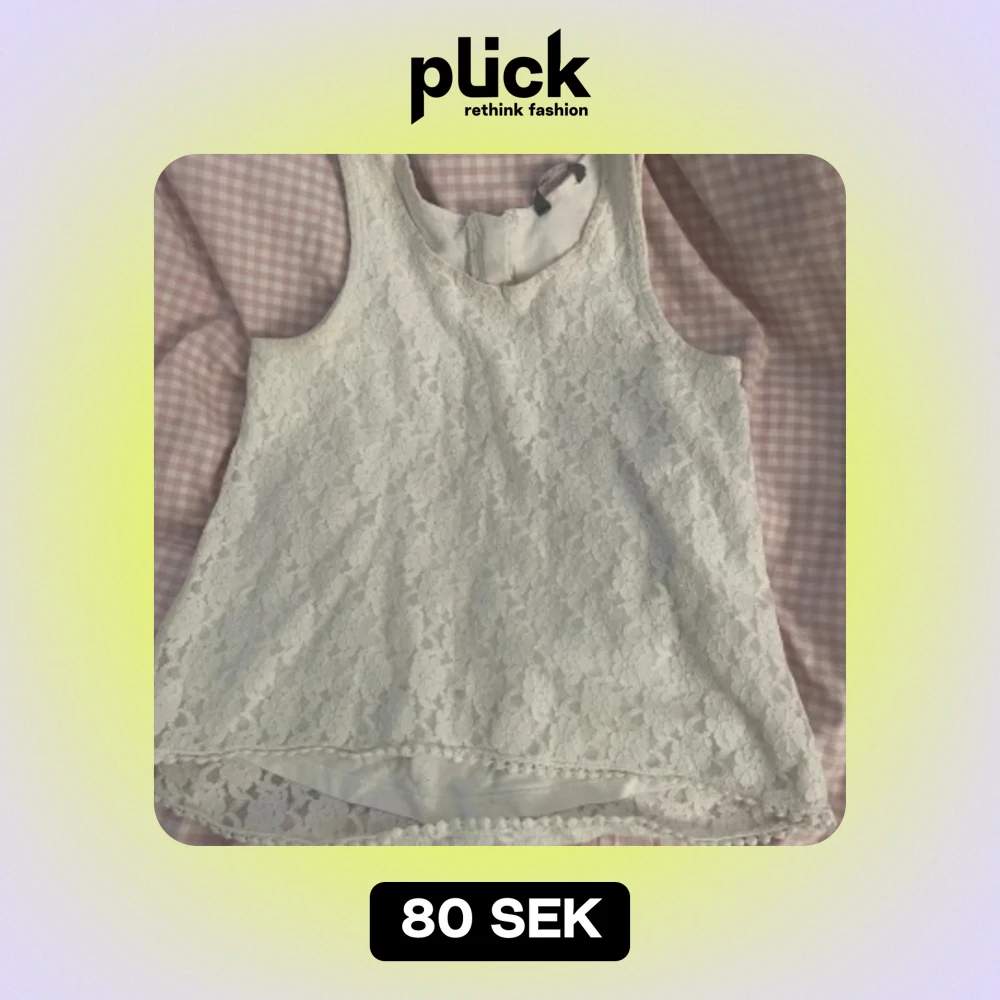 Vit topp med blommigt mönster, toppen är använd men är i princip i nytt skick. Den har dubbelt lager med en dragkedja på ryggen.