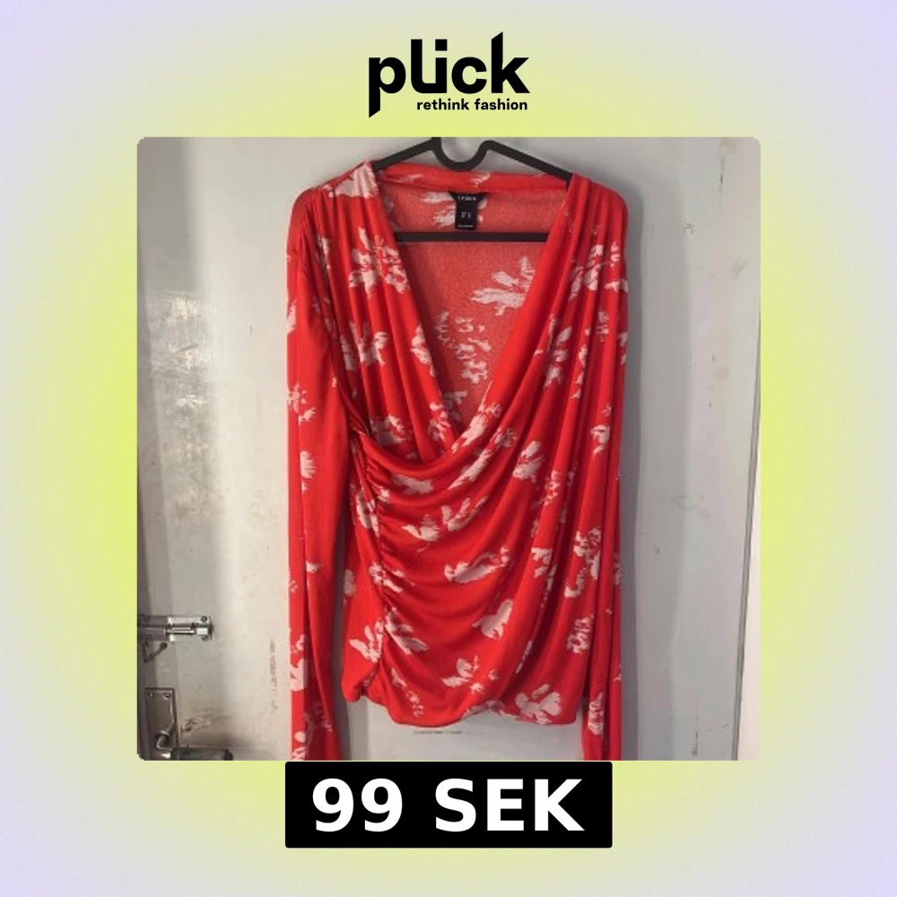 Säljer en röd omlottopp från Lindex med vitt blommigt mönster. Toppen har lång ärm och ett snyggt draperat omlottliv. Perfekt för dig som vill ha något färgstarkt och bekvämt.