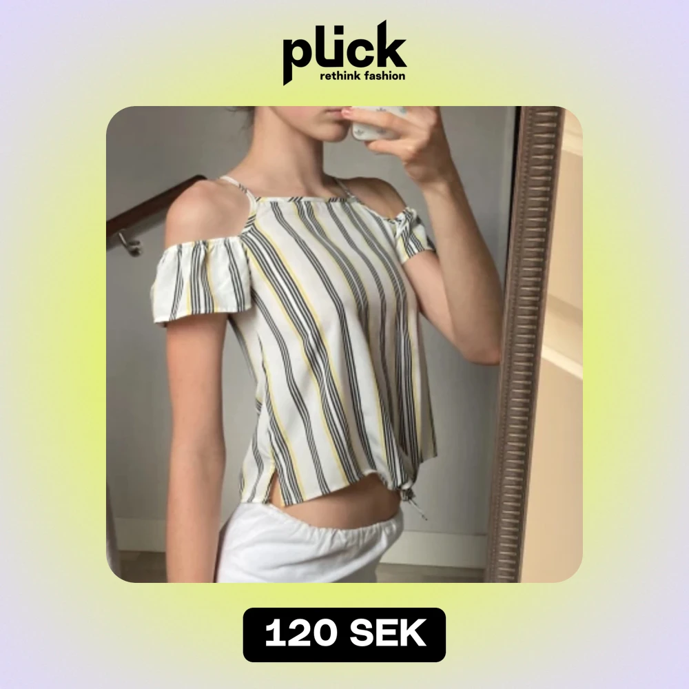 Så fin vit topp med ränder💖 Öppna axlar/off shoulder