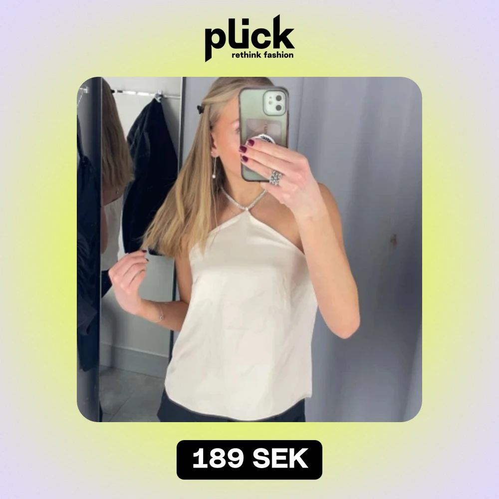 Super söt topp med öppen rygg, har ett silvrigt band runt nacken som man kan justera och är i skönt satin material 💗använd en gång, passar s - xs