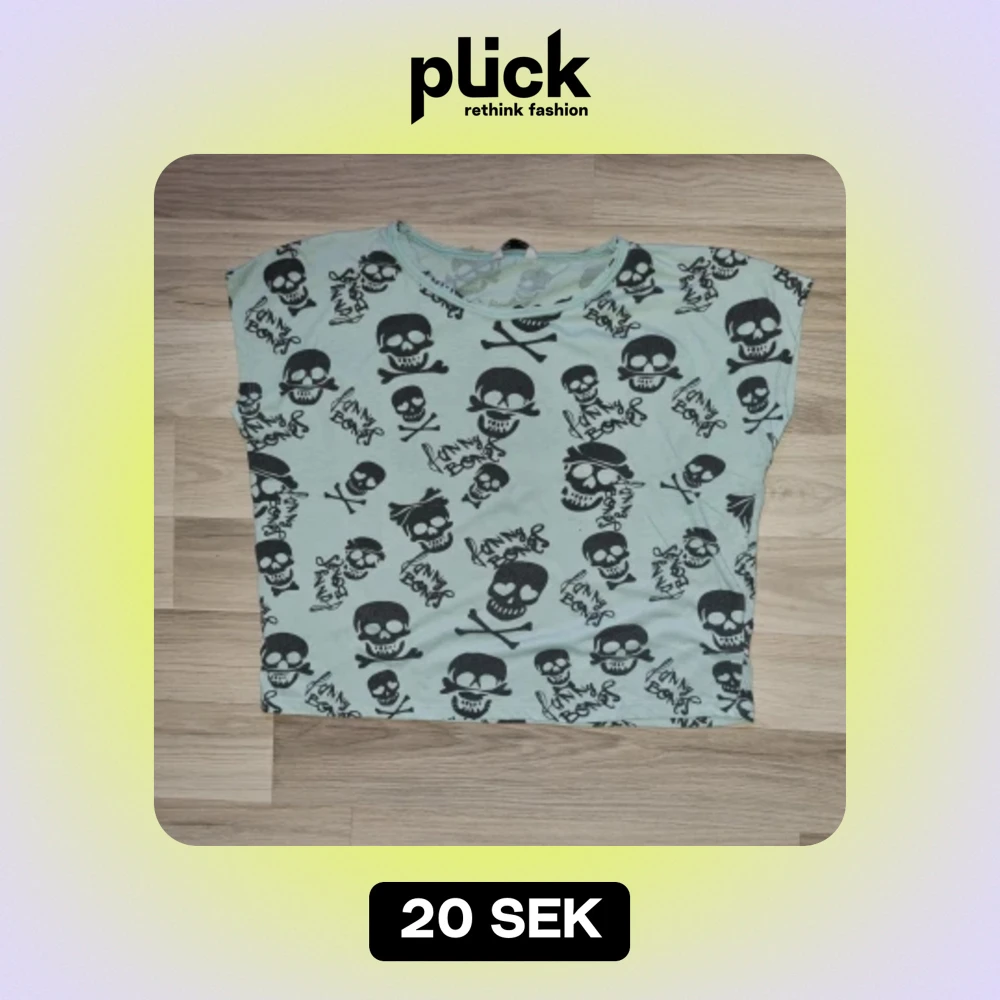 Ljusblå topp med döskallar på från Cubus i stl 164.