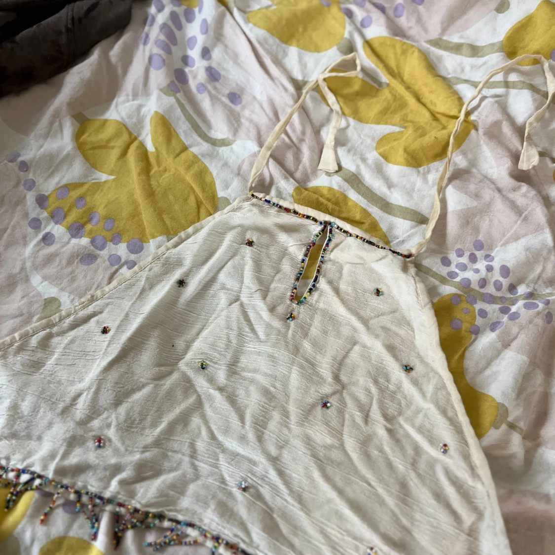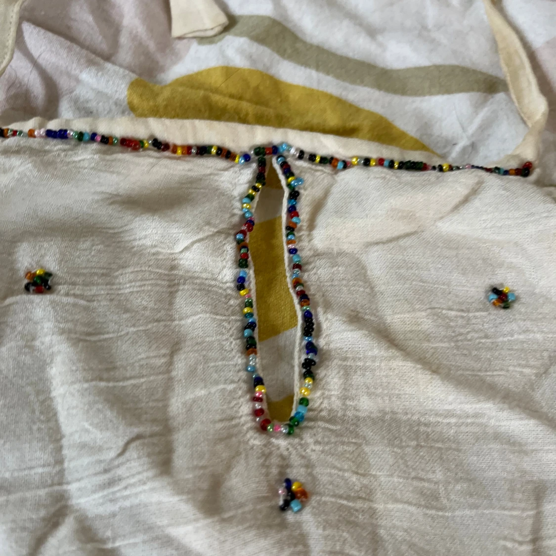 En knyt-magtröja. Väldigt skrynklig men kan strykas innan avfärd med posten🤪. Står ingen storlek, skulle kanske gissa XS men har funkat för mig med S.