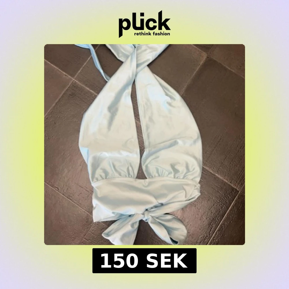 Jätte fin ljusblå topp från Gina som man kan knyta lite hur man vill, öppen i ryggen o endast använd en gång!