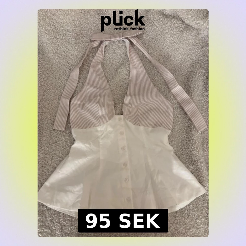 Fin topp med knappar framtill och öppen rygg, rosett detalj baktill. Toppen är figur sydd. Aldrig använd, därmed nytt sick!