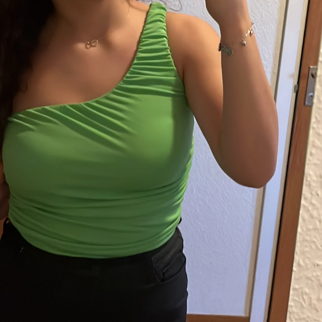 fin grön topp med ett axelband från zara, slutsåld 🤍helt ny