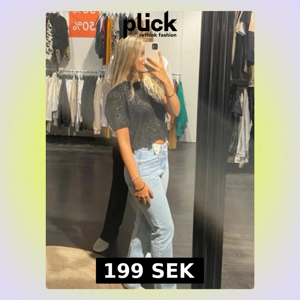 Säljer en svart blus med korta ärmar och vackert blommigt spetsmönster. Toppen har rund halsringning och är lätt croppad.