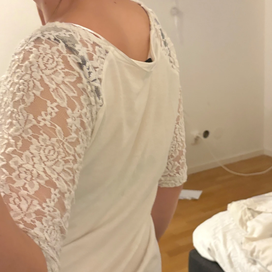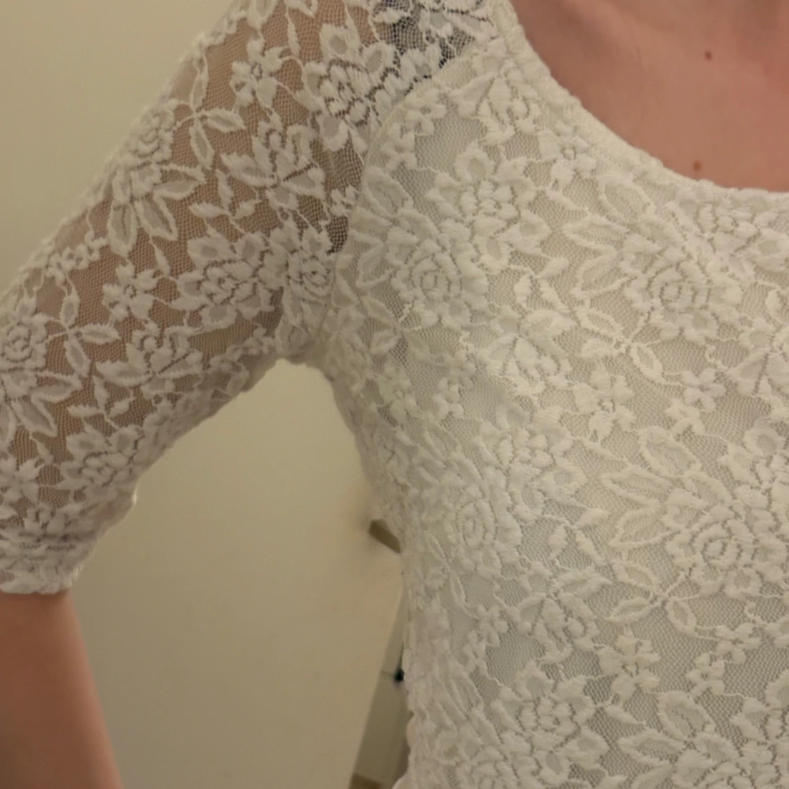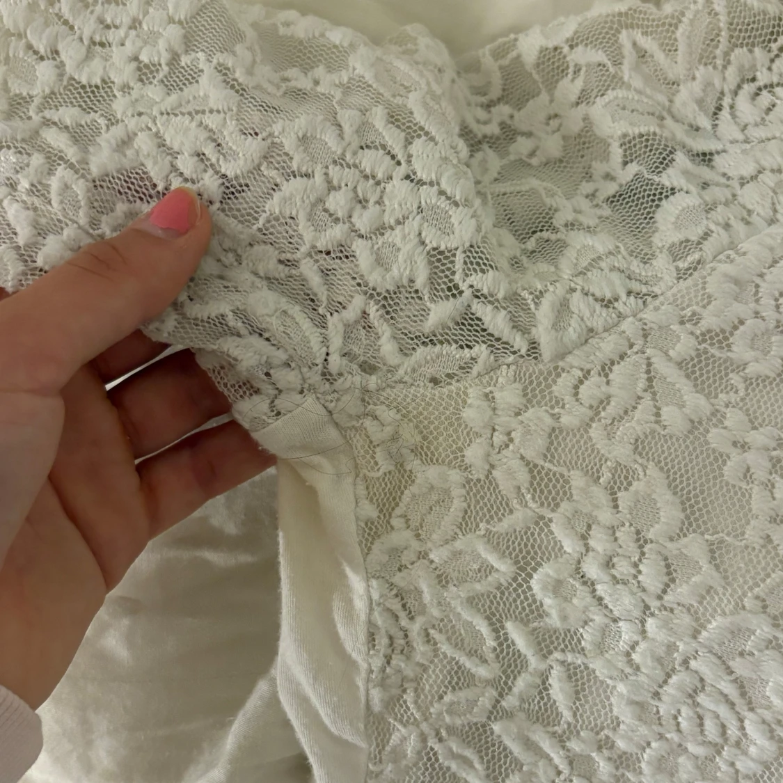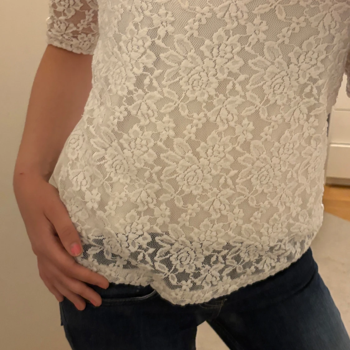 Så fin topp med spets. Bra skick ett litet litet håll nära armhålan se sista bild. Storlek L tycker den passar mig bra som brukar ha s, använd gjärna köp nu🫶