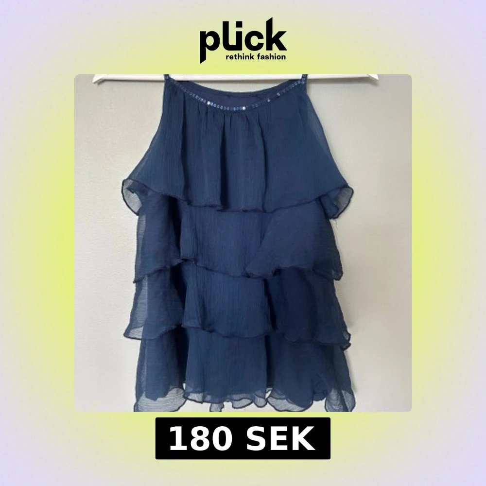 Mörkblå fin fest topp med paljetter på banden och vid halsen, har även volanger på både framsida och baksida💙