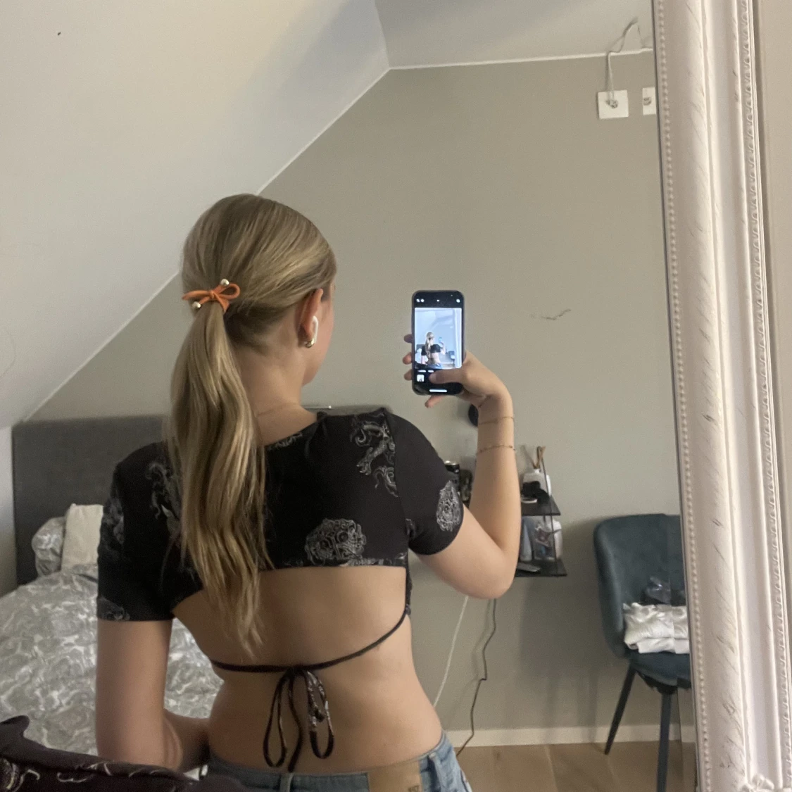 Cool topp med mönster och med öppen rygg! Materialet är jätte skönt, typ som tunt tränings material 💕💕
