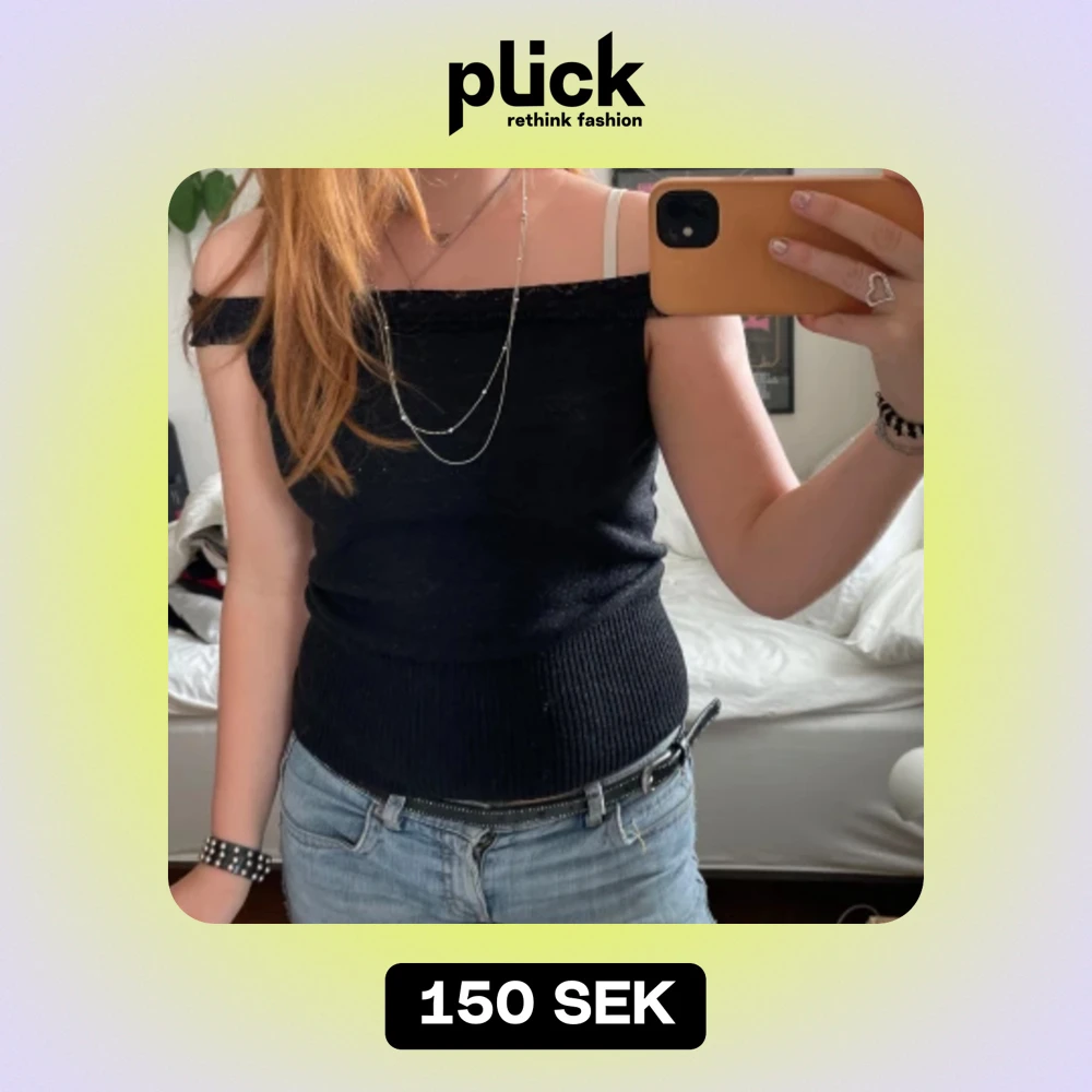 SĂ„ snygg stickad offshouldertopp med spetdetalj.đ€ StĂ„r storlek L men skulle sĂ€ga att den passar en M ocksĂ„. Perfekt till bĂ„de skola och fest!