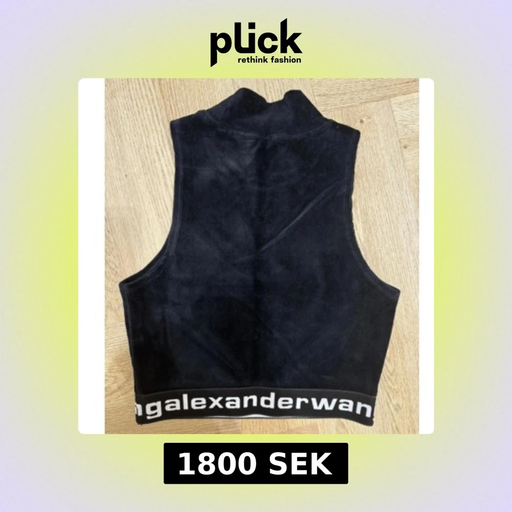 Snygg svart topp från Alexander Wang i mjukt material. Toppen har en hög krage och ett elastiskt band med logotypen längst ner. Perfekt för en stilren look.
