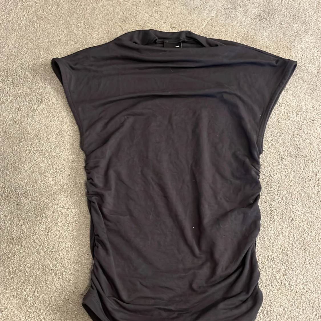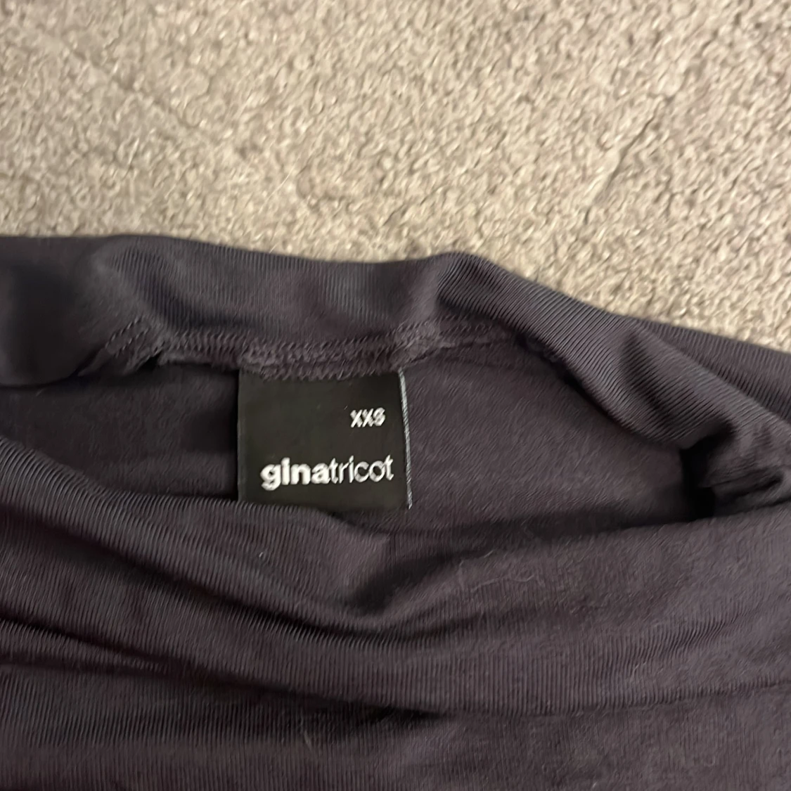 Säljer en svart topp från Gina Tricot i storlek XXS. Toppen har en enkel och stilren design med rynkade sidor som ger en snygg siluett. Den är ärmlös och gjord i mjukt bomullsmaterial, perfekt för dig som gillar minimalistisk stil.