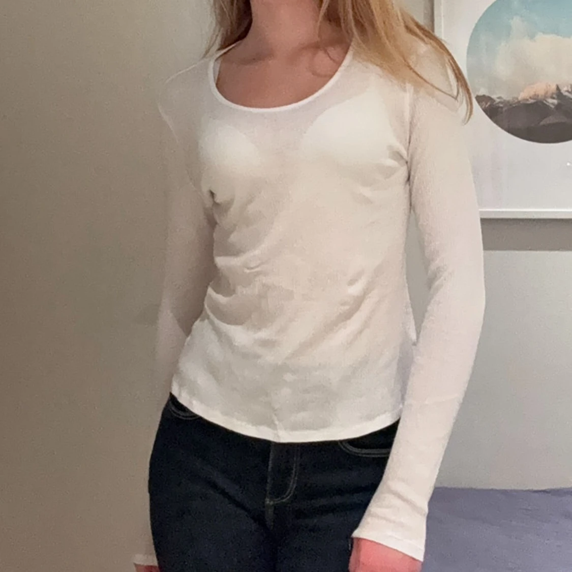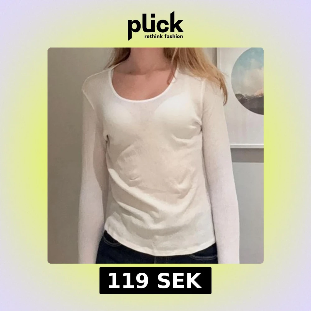 Säljer en enkel och stilren vit långärmad topp med rundad halsringning. Modellen är figurnära och har en mjuk, tunn känsla som passar perfekt till jeans eller kjol. Materialet känns lätt och bekvämt mot huden. Från weekday, knappt använd!