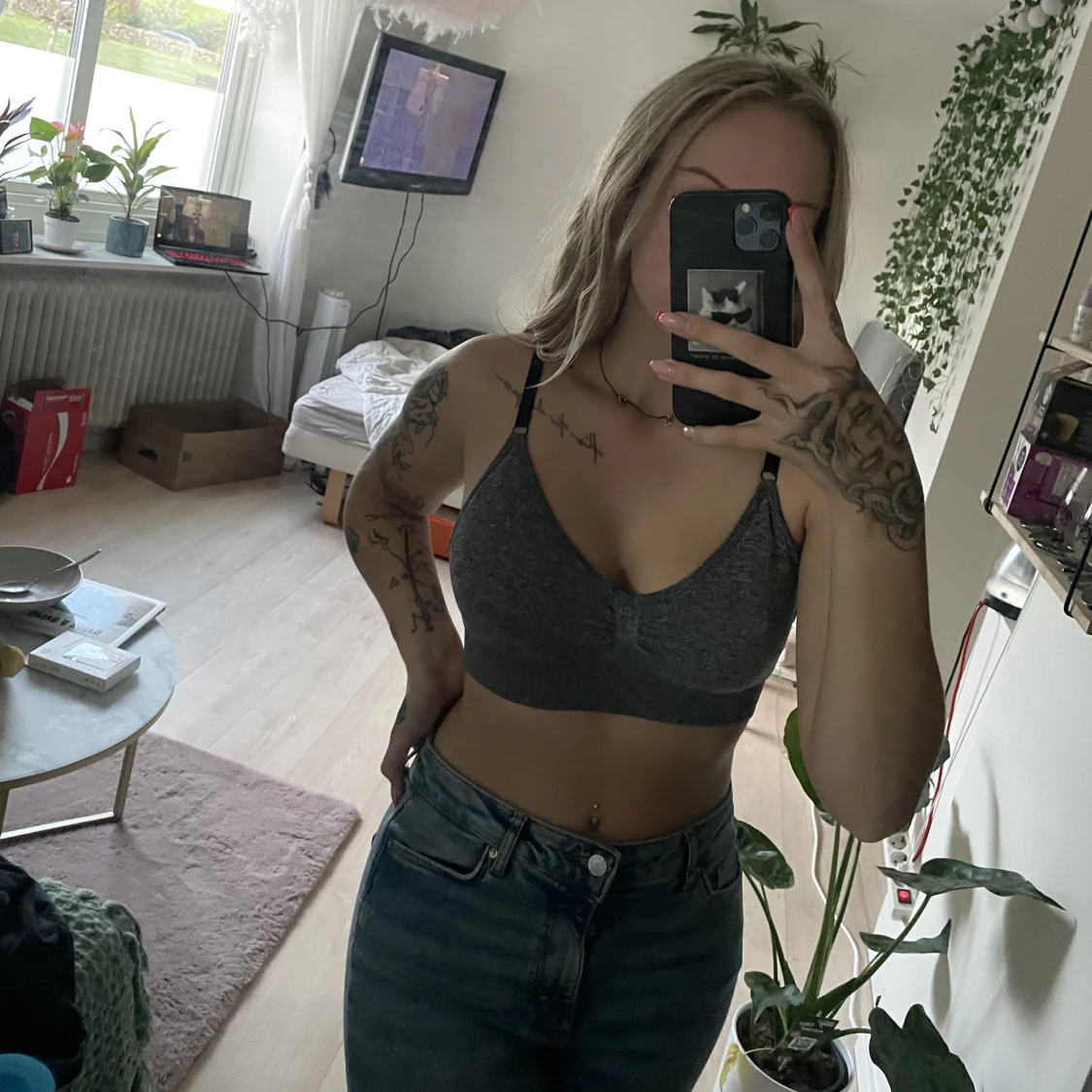 Fin grå topp! Använd få gånger, Superskön med knäppe där bak som på en bh!