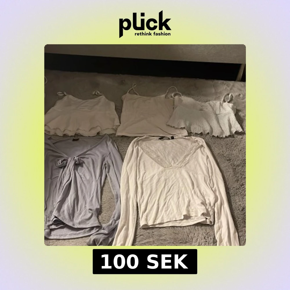 Säljer fem olika toppar i ljusa färger. Tre ärmlösa linnetoppar med smala axelband, varav en har volangkant och en är smockad. Två långärmade toppar, en omlottmodell i ljusgrått med knyt och en vit med spetsdetalj vid v-ringningen. Perfekt för att mixa och matcha. Säljer alla för 100kr annars 25kr styck 💕