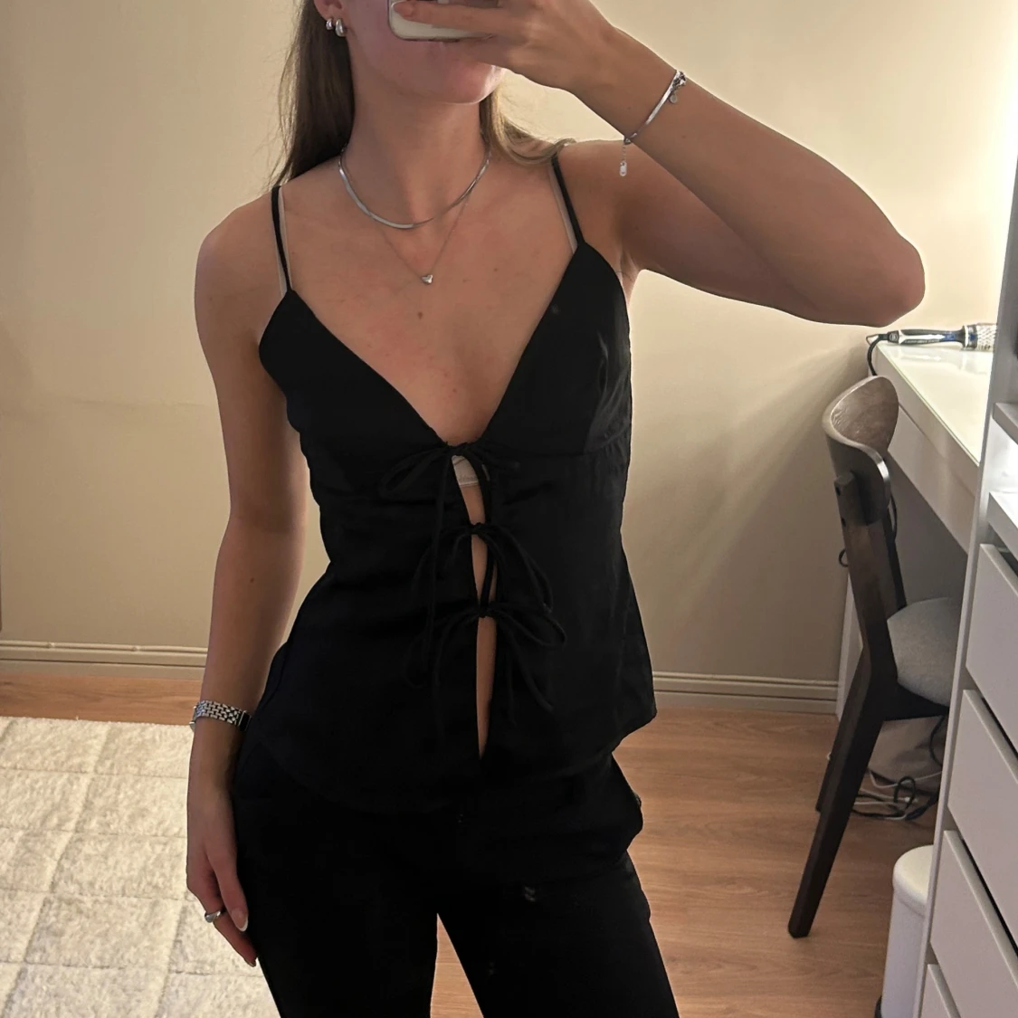 Jättesött svart satinlinne från ginatricot i strl XS. Använd fåtalet gånger så i jättebra skick.