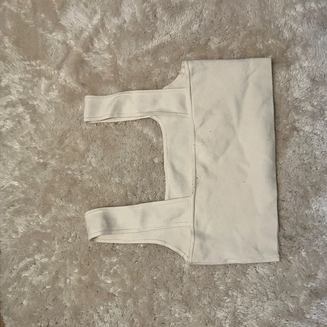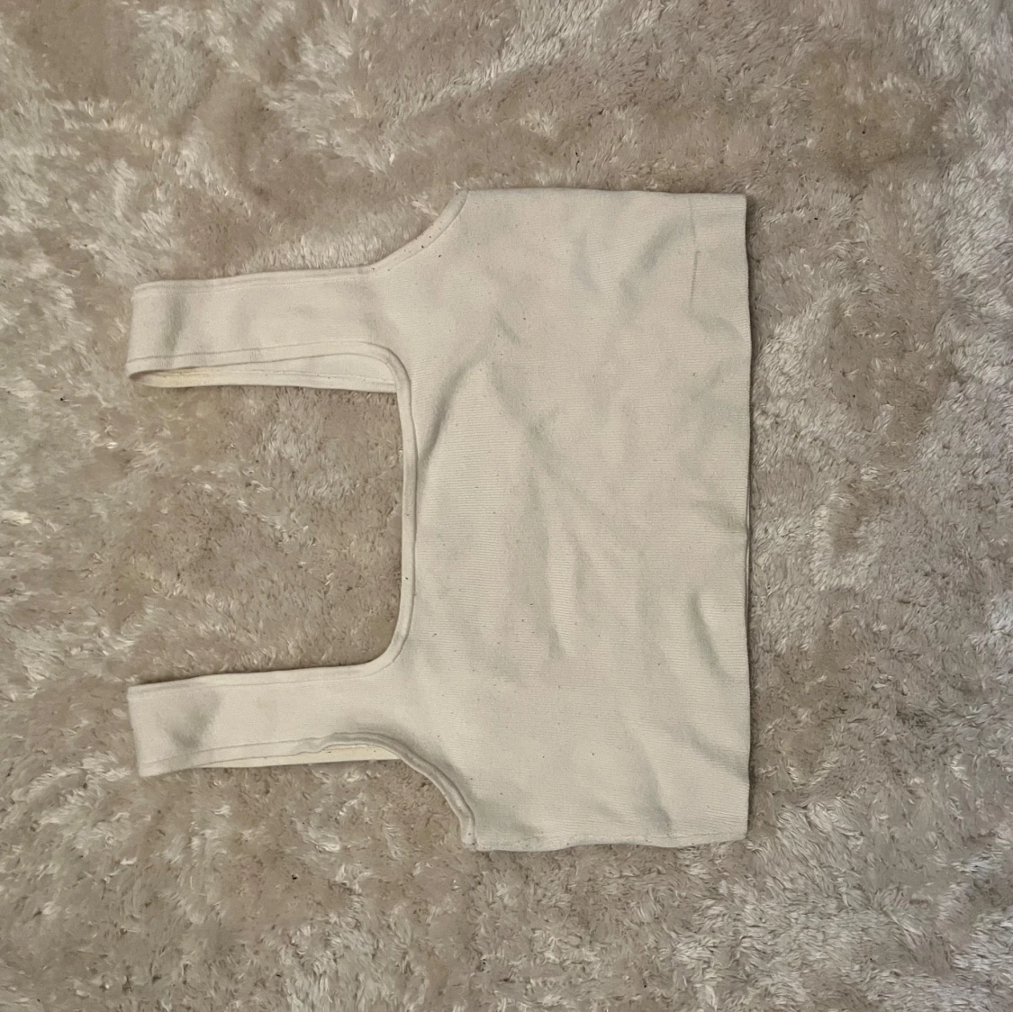 Säljer en stilren vit croppad linnetopp från H&M. Toppen har breda axelband och är ärmlös med en fyrkantig halsringning. Perfekt att matcha med jeans eller kjol för en clean look. Materialet är mjukt och stretchigt för en bekväm passform.