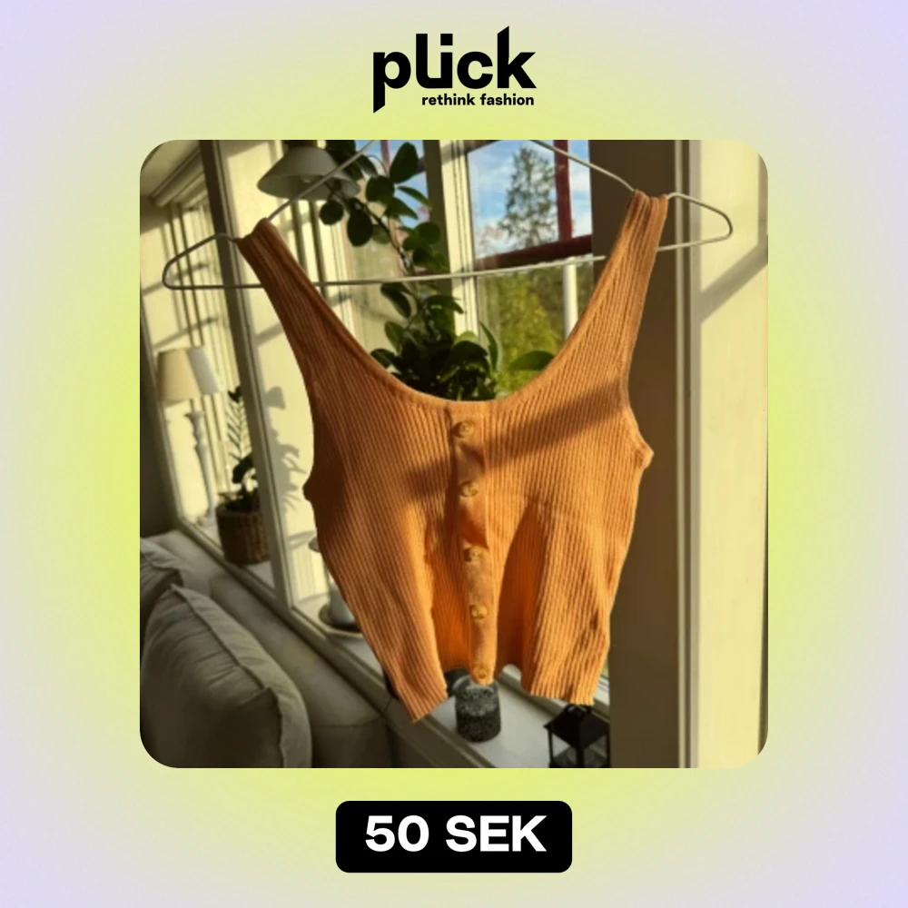 Säljer en ett orange/peach färgat ribbat linne med knappar framtill. Knappt använt så de är i bra skick.