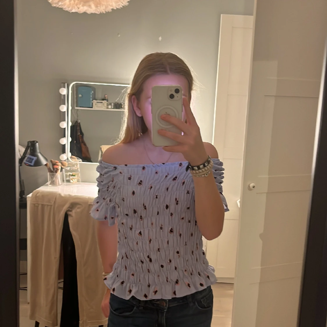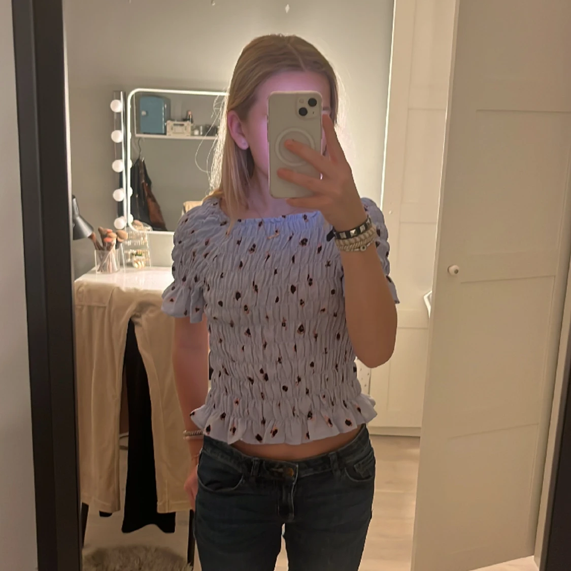 Söt mönstrad topp i storlek 134 men funkar även om man som jag har 152-158 i storlek. Från HM. Perfekt skick.