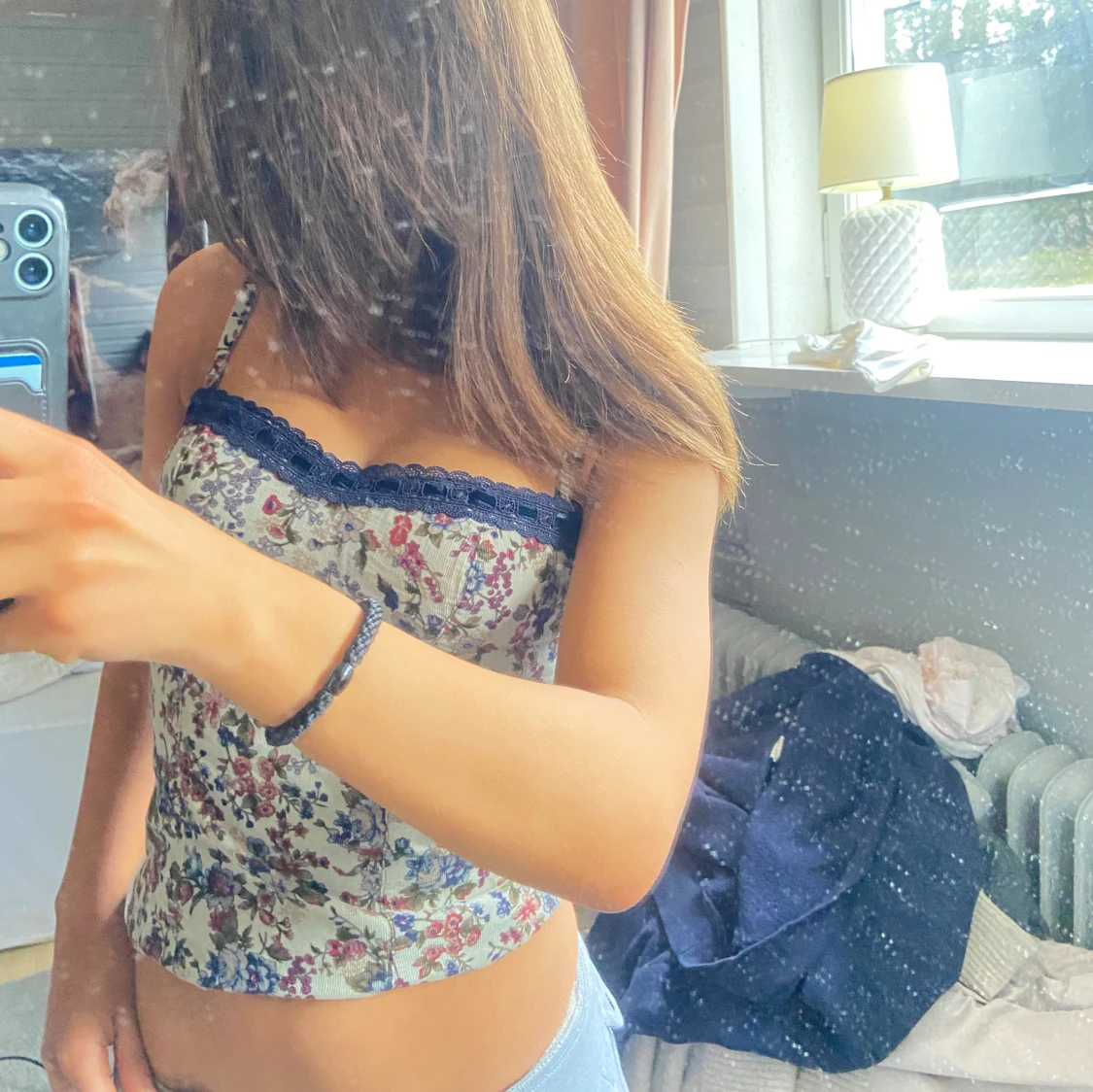 Vintage korsett topp köpt utomlands, tycker den är så fin men har inte fått användning av den så väljer att säljas den den är en xs/34 har tyvärr inga mått.