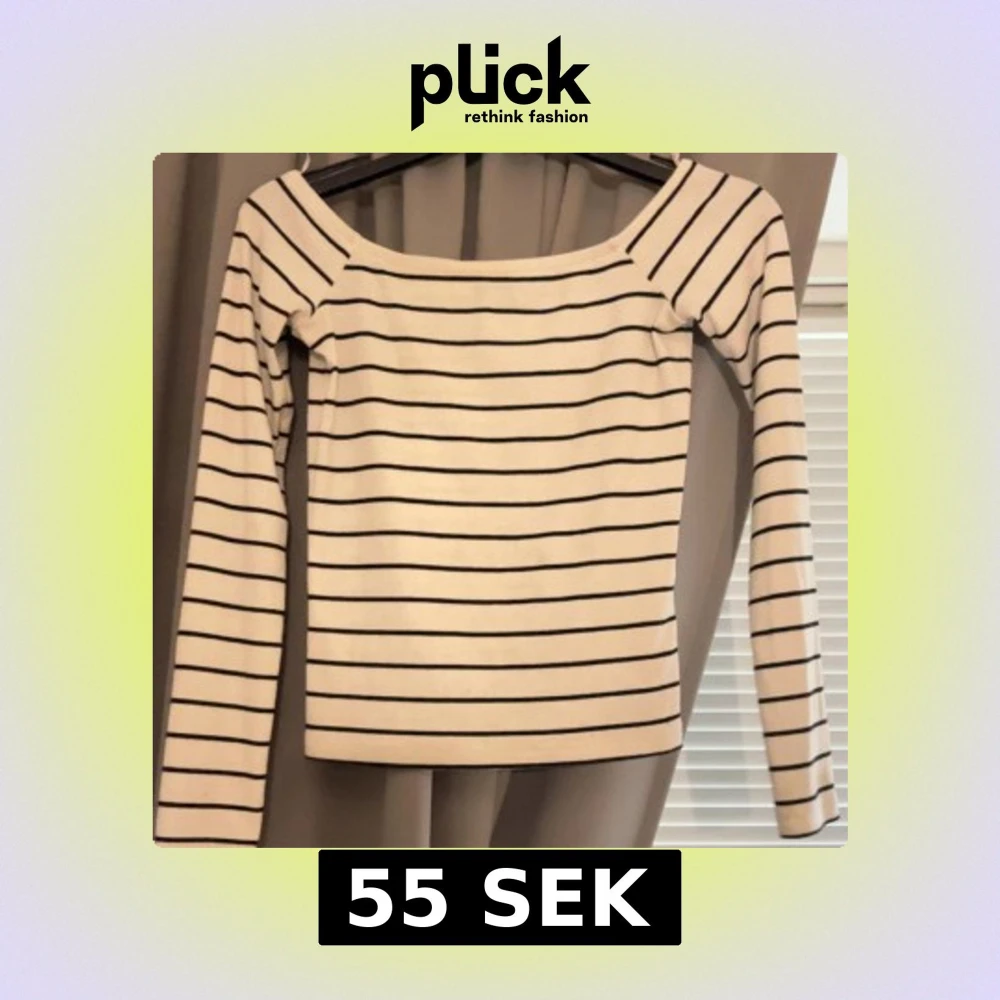 Randig söt off shoulder tröja från Gina Tricot i storlek xs! Väldigt bra skick, inga fläckar eller nåt.