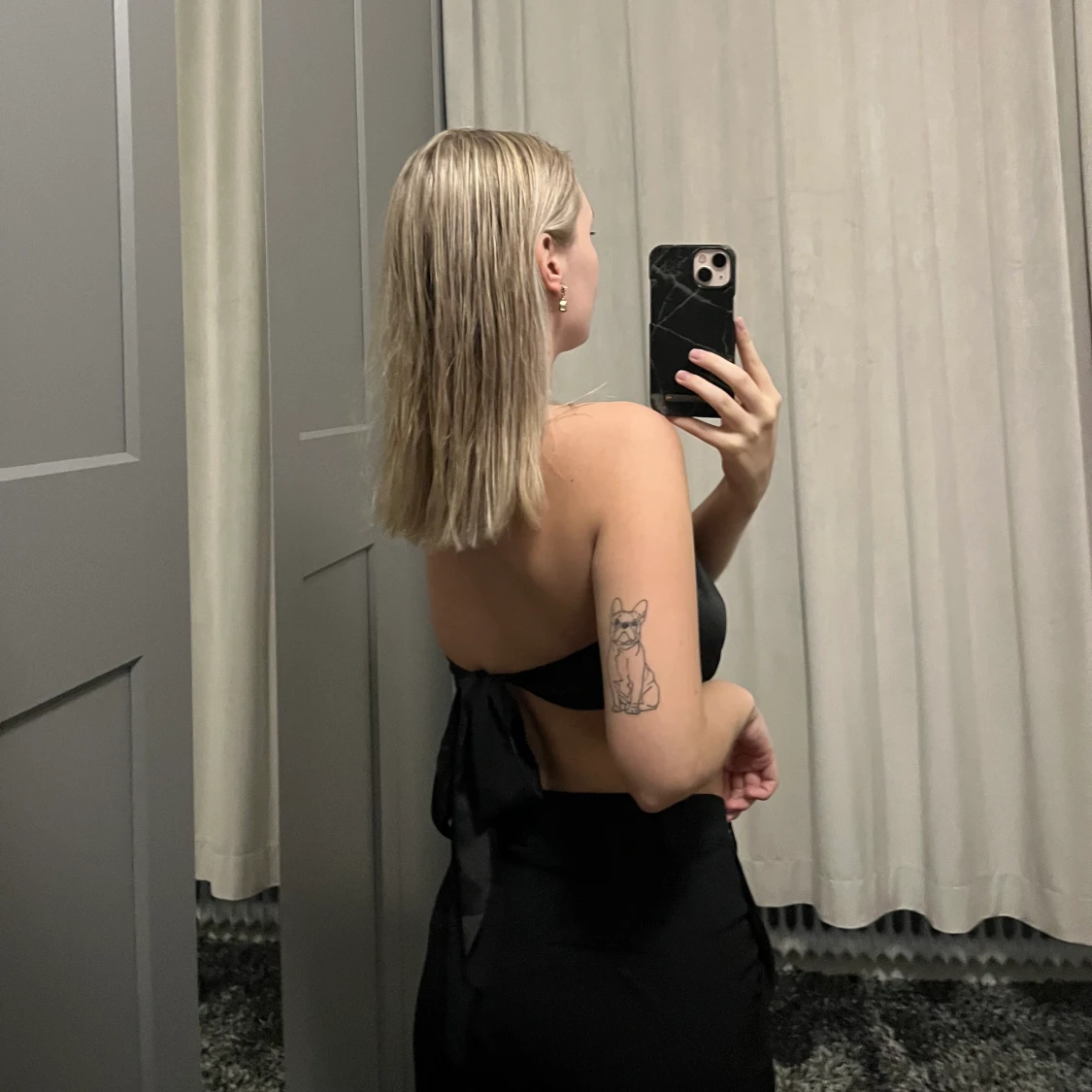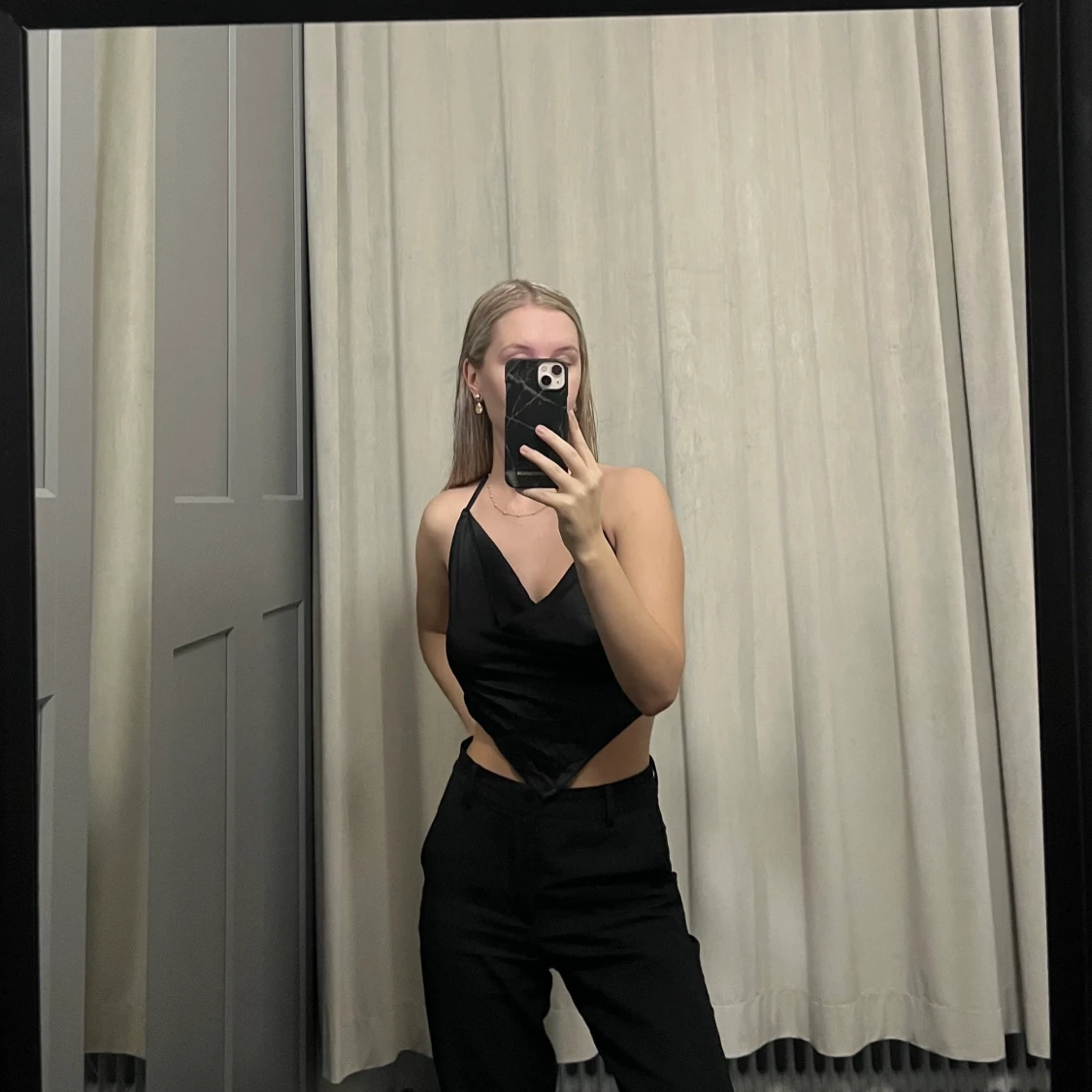 Svart topp som man knyter där bak. Kommer inte till användning, endast använt 2-3 gånger🫶🏼