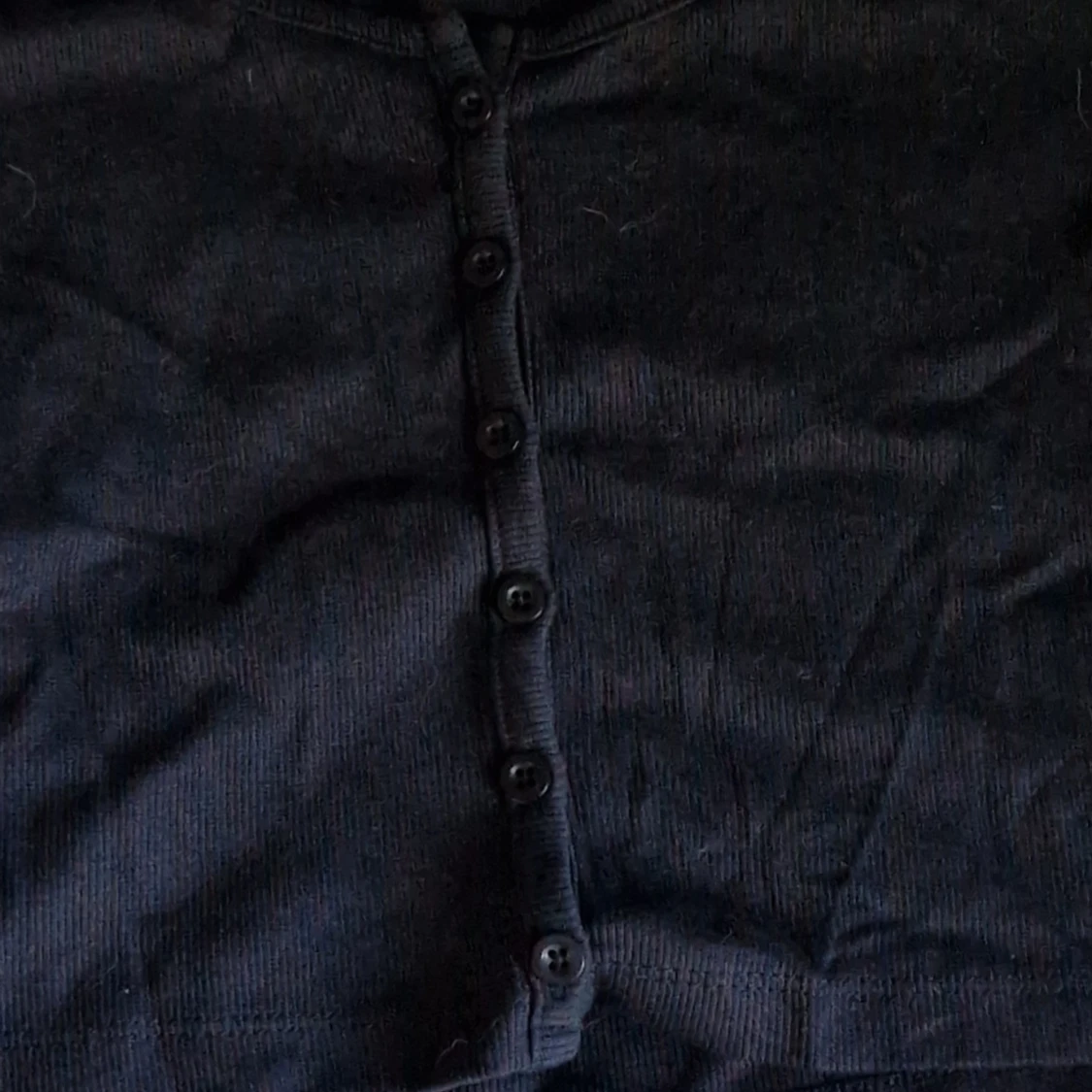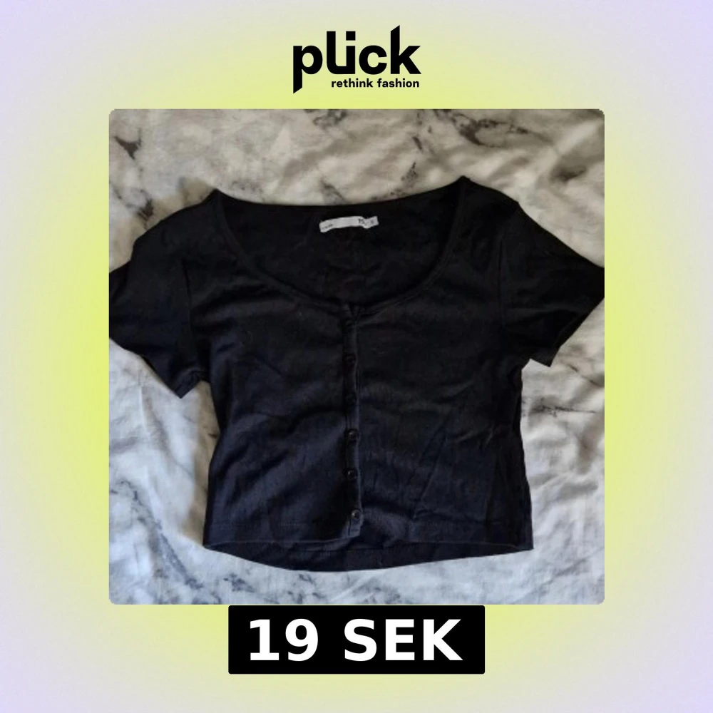 En svart croppad topp från lager 157 med korta ärmar och rundad urringning. Toppen har knappar framtill och är tillverkad i ett mjukt, ribbat bomullsmaterial. Perfekt för en avslappnad och trendig look.