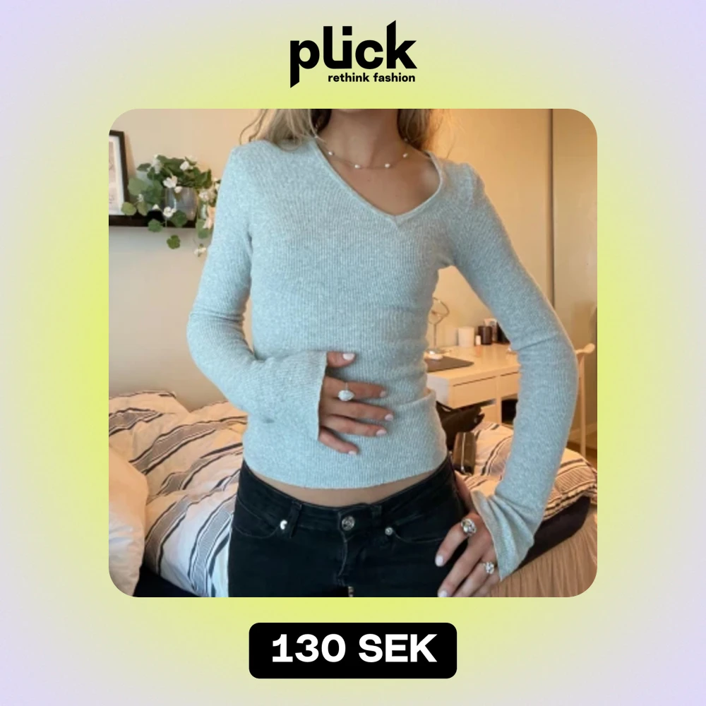 ribbad topp med långa ärmar och asymmetrisk ringning. Passar xs/s💕Från Bikbok