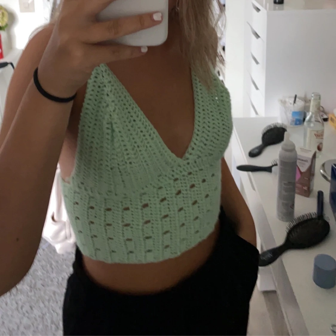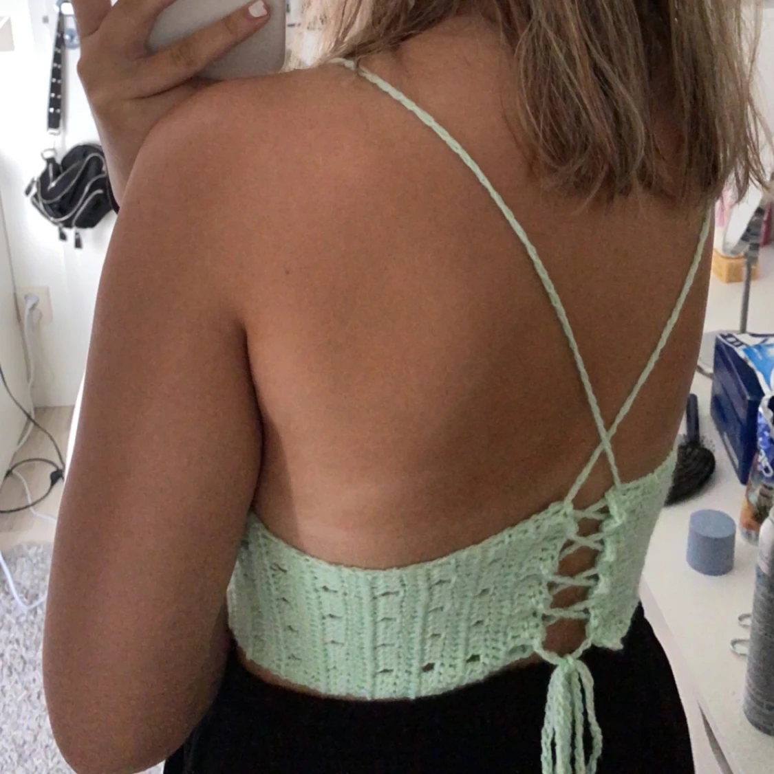 Topp som jag själv virkat. Den har justerbar rygg så passar storlek xs-m. 200kr + frakt