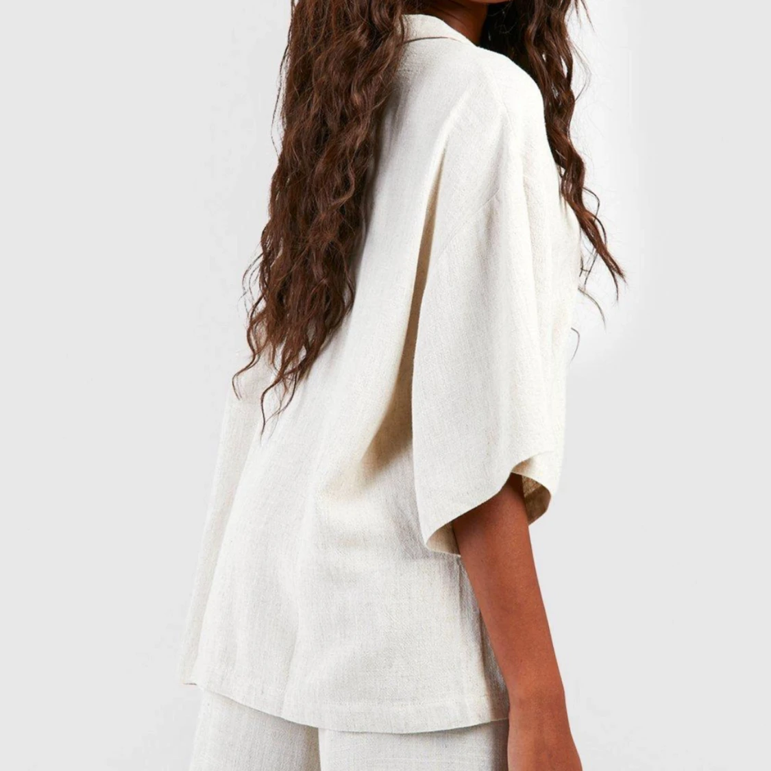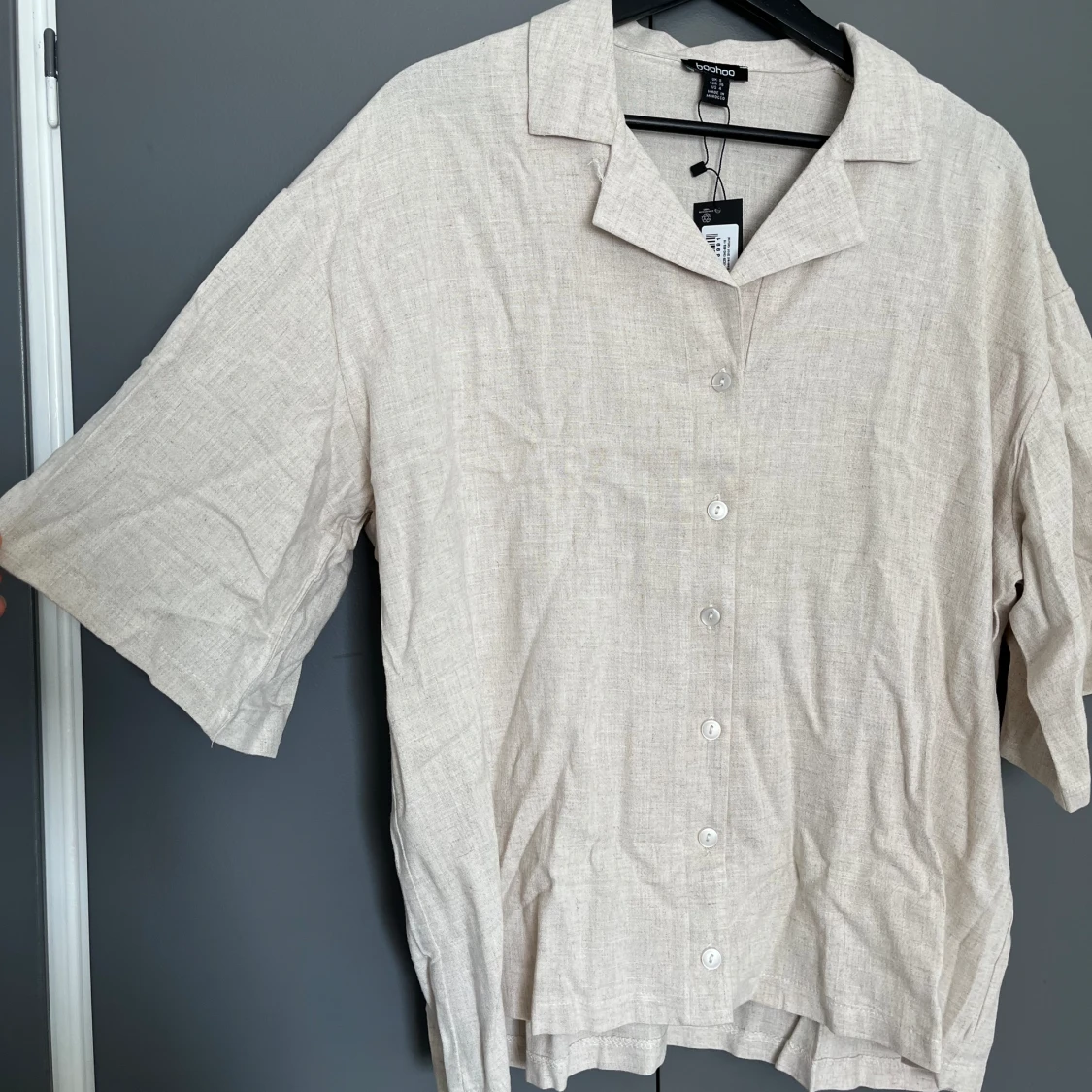 Säljer min otroligt fina topp i linne från Boohoo då den inte var min stil. Storlek 36 och helt ny med lappen kvar🤩