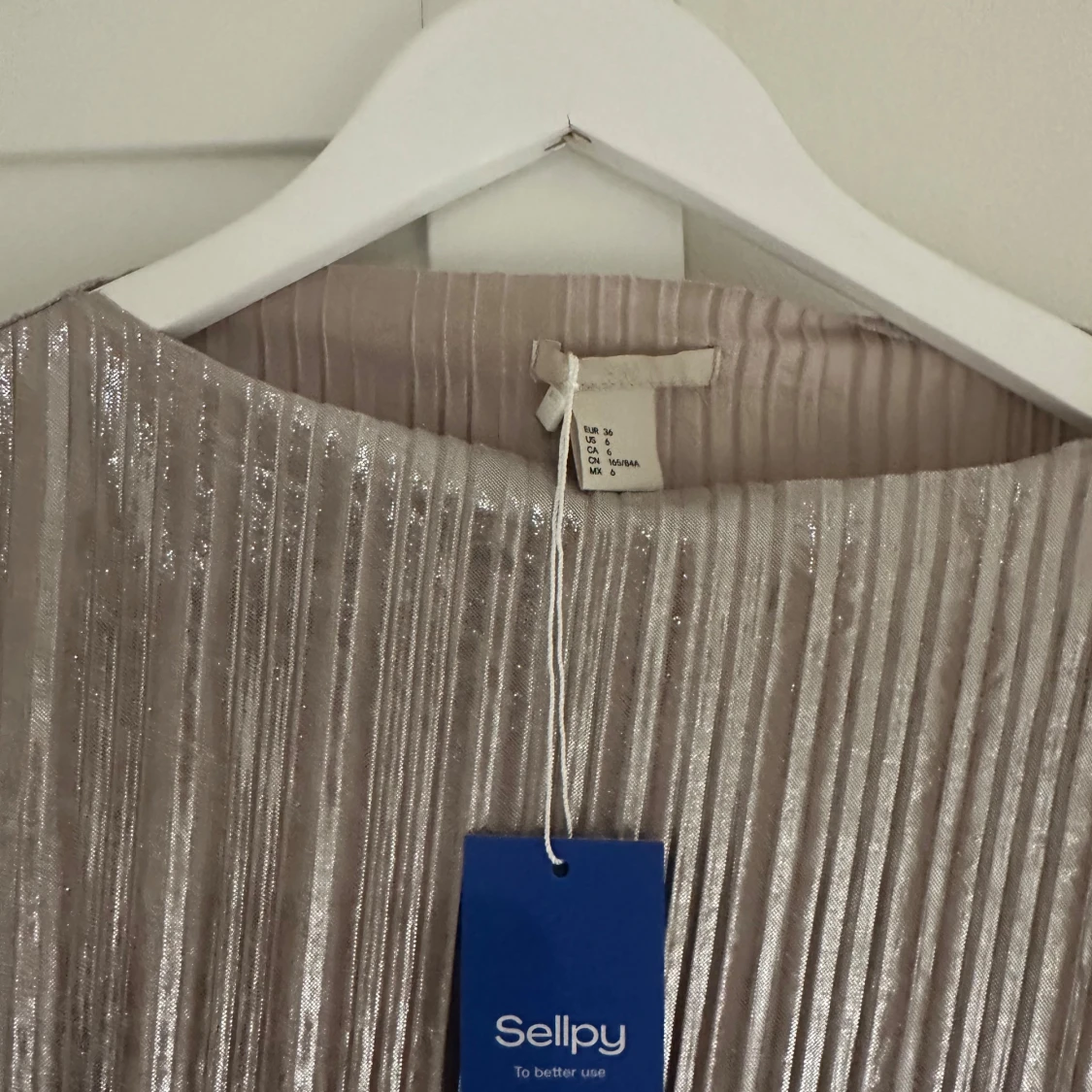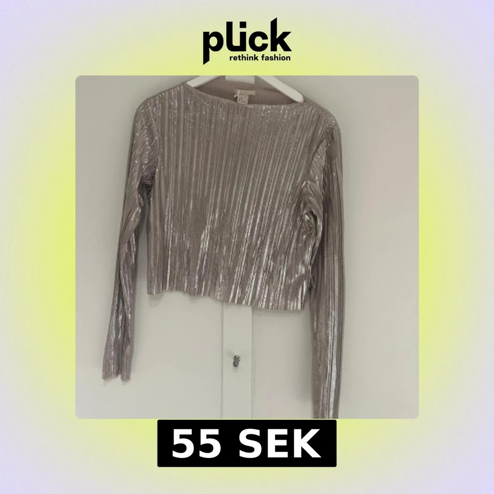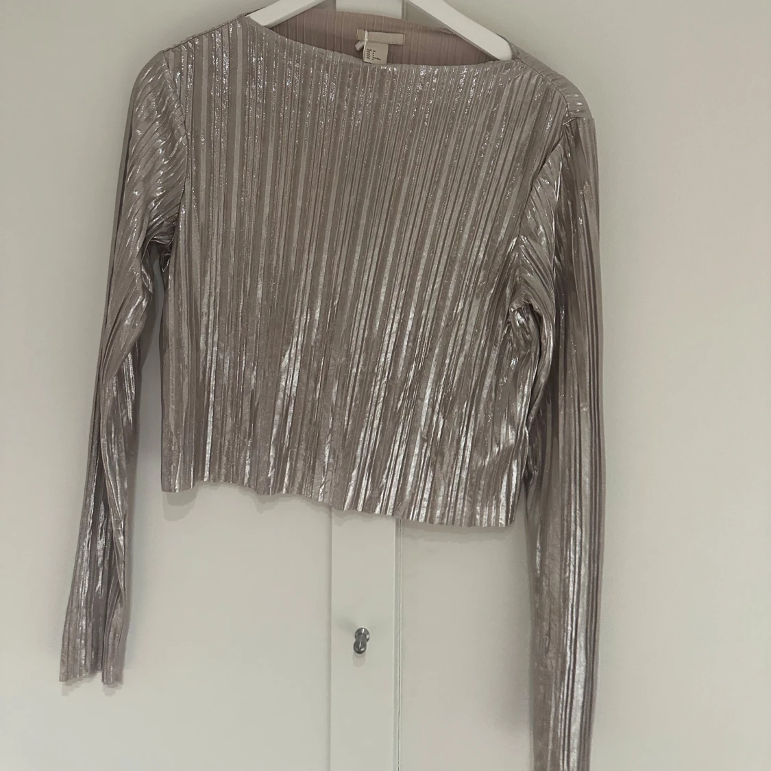 Snygg silverfärgad topp från H&M med glittrig finish. Toppen har långa ärmar och en croppad passform, perfekt för en festlig look. Materialet är syntetiskt och ger en lyxig känsla. Ett måste för garderoben!