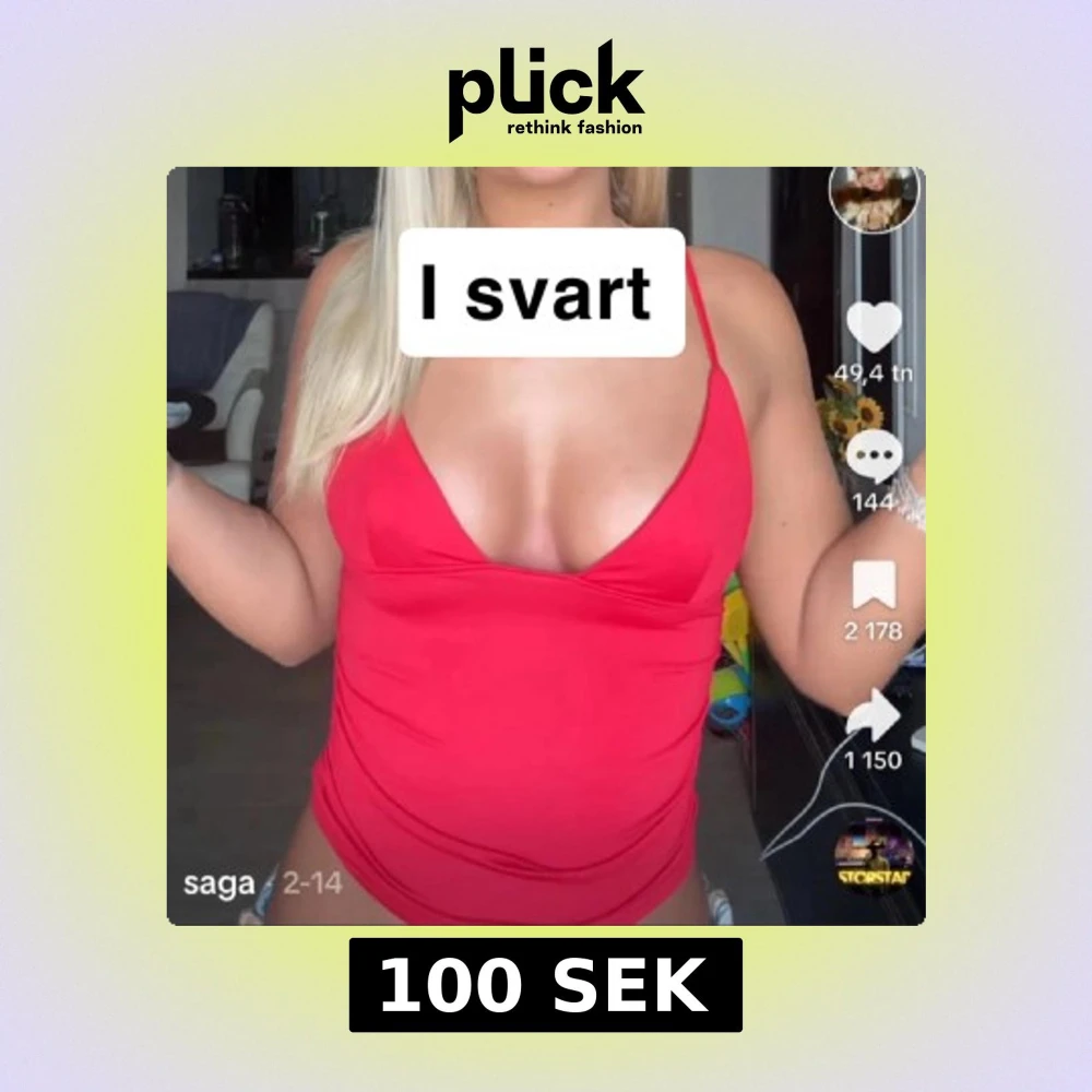 OBS! På bilden visas en röd topp, jag säljer exakt samma linne fast i svart.😊 Säljer en topp med smala axelband och djup urringning. Perfekt för varma dagar eller som ett statement-plagg. Enkel och stilren design som passar till mycket. Aldrig använd! pris kan diskuteras