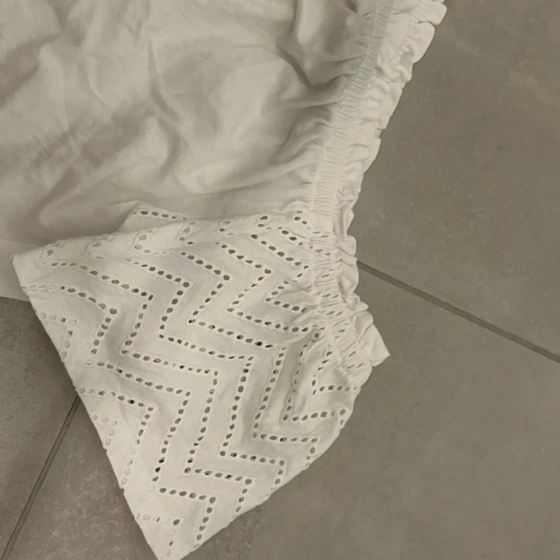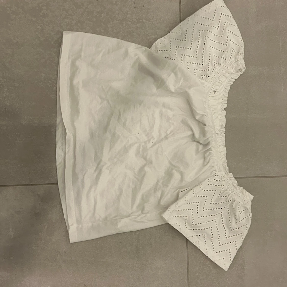 Säljer en söt vit blus från Primark med spetsdetaljer. Perfekt för sommardagar med sitt luftiga material och fina mönster🪷🪷