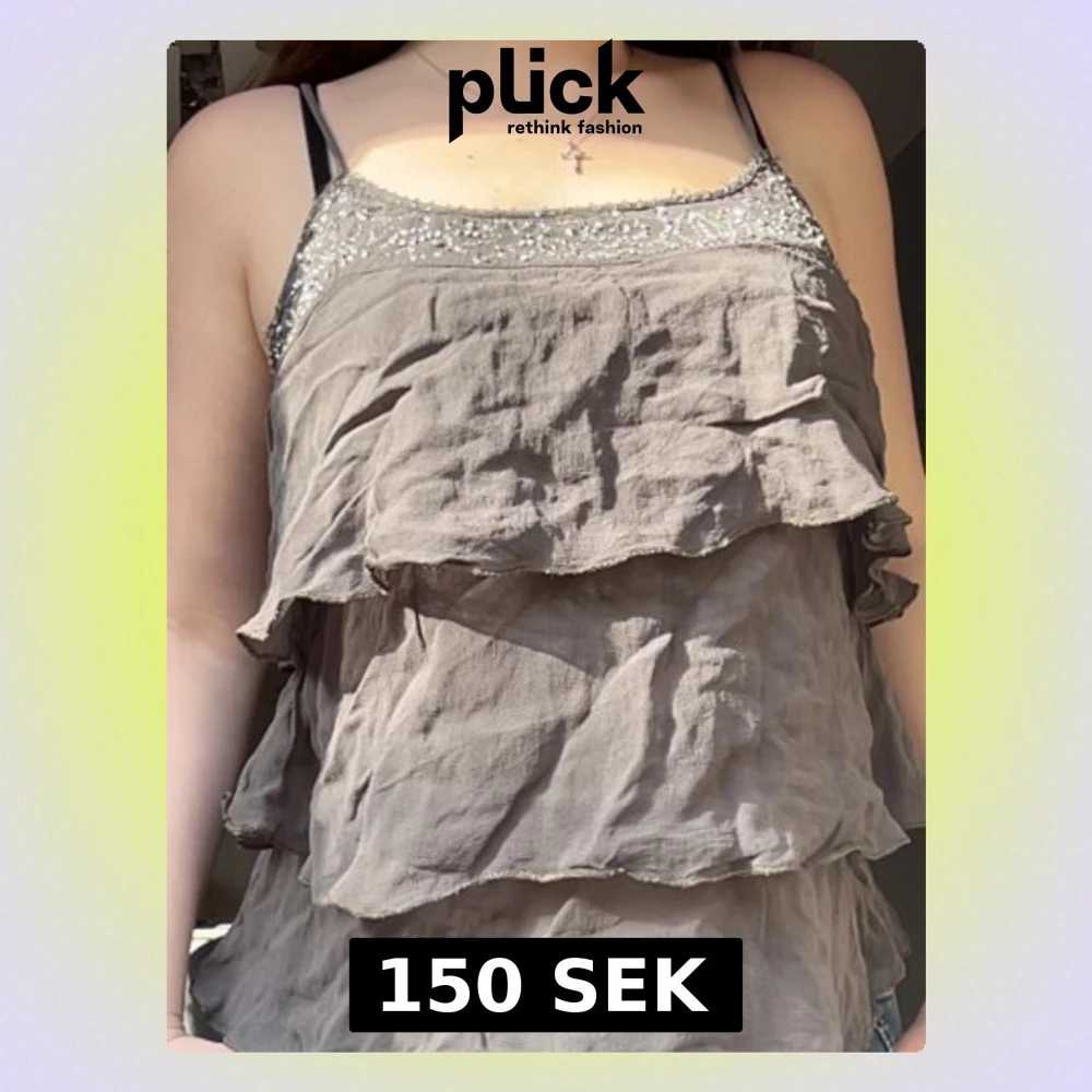 Jätte fin topp som jag thriftat. Märket är indiska och är i storlek L men passar även M. Toppen har en grågrön färg. Skriv vid fler frågor!