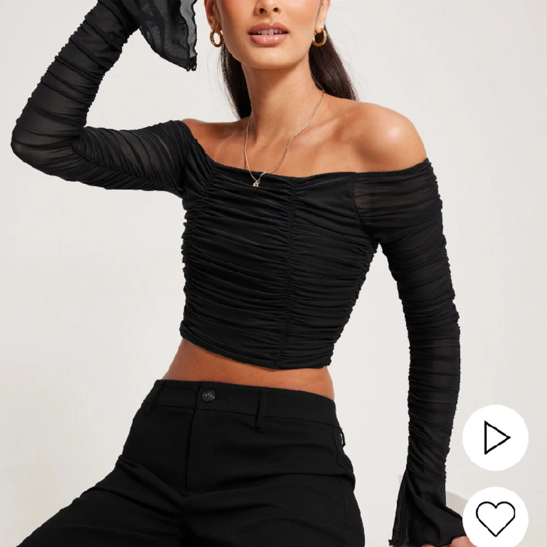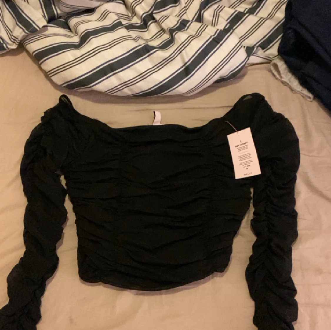 En svart off shoulder topp i storlek M, endast testad med prislappen kvar