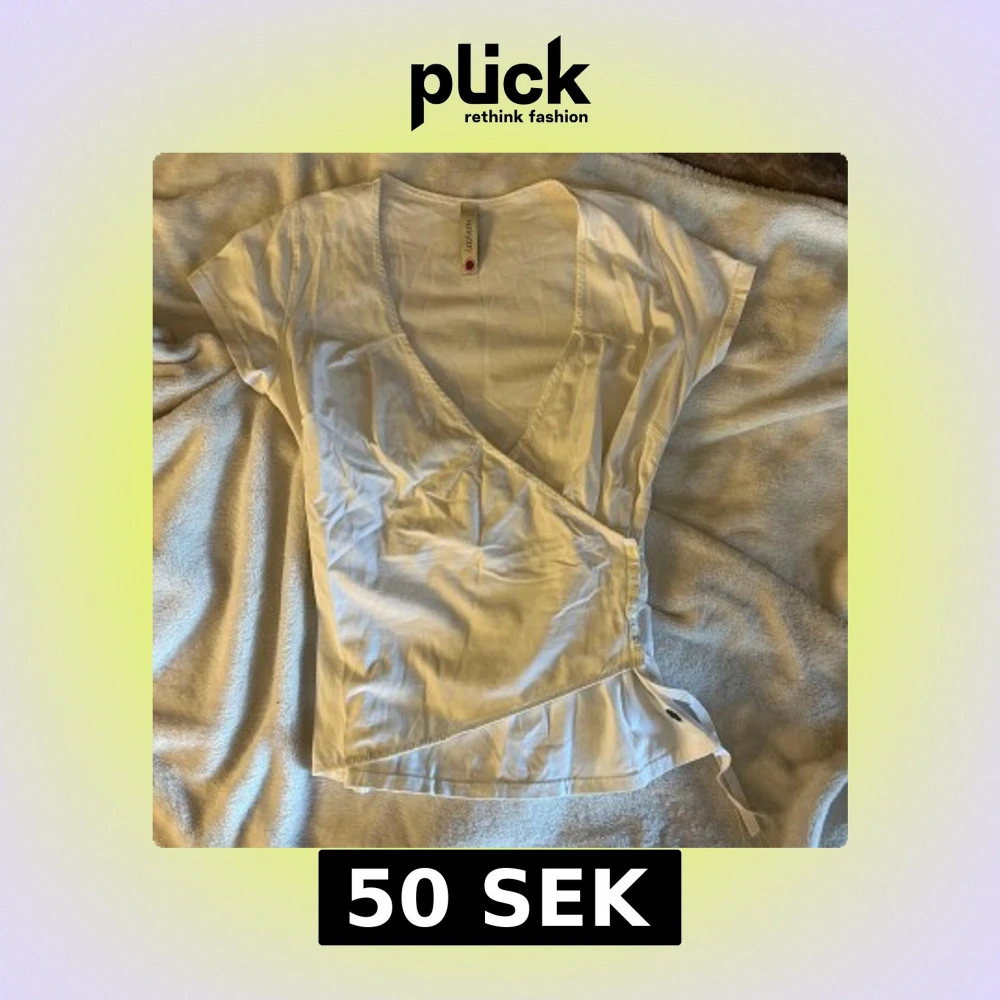 Vit omlottopp från Hunkydory med korta ärmar och v-ringning. Toppen har knyt i sidan för en snygg passform och är gjord i mjuk bomull. Perfekt för dig som gillar en clean och enkel stil med en twist.