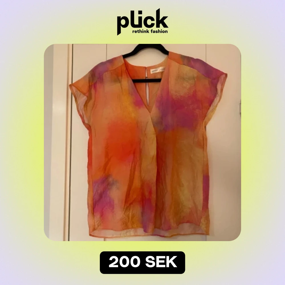 Ny orange, gul och rosa topp i strl 34 från Inwear, modell Tendra. Ny, aldrig använd. Tyvärr finns en liten skada vid v-ringningen. Mått Över bröstet: ca 48 cm Längd från axeln och ner: ca 65 cm 85% viskos och 15% polyamid