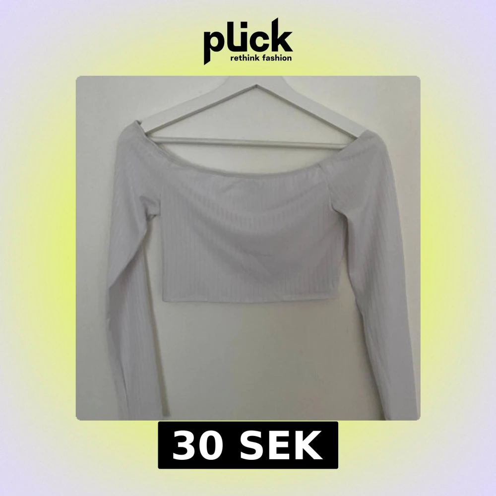 Säljer en vit croppad topp från NLY ONE i storlek XS. Toppen har offshoulder-modell med långa ärmar och är ribbad med diskreta vertikala ränder. Perfekt för dig som gillar stilrena och trendiga plagg med en snygg passform.