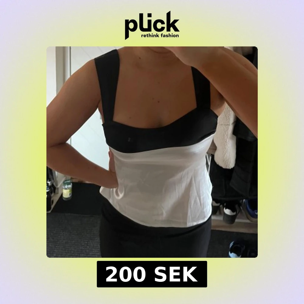 Snygg svartvit korsett med breda axelband och knytband i ryggen. Den har en stilren design med en kontrast mellan svart och vitt, vilket ger en elegant look. Aldrig använd! 💕