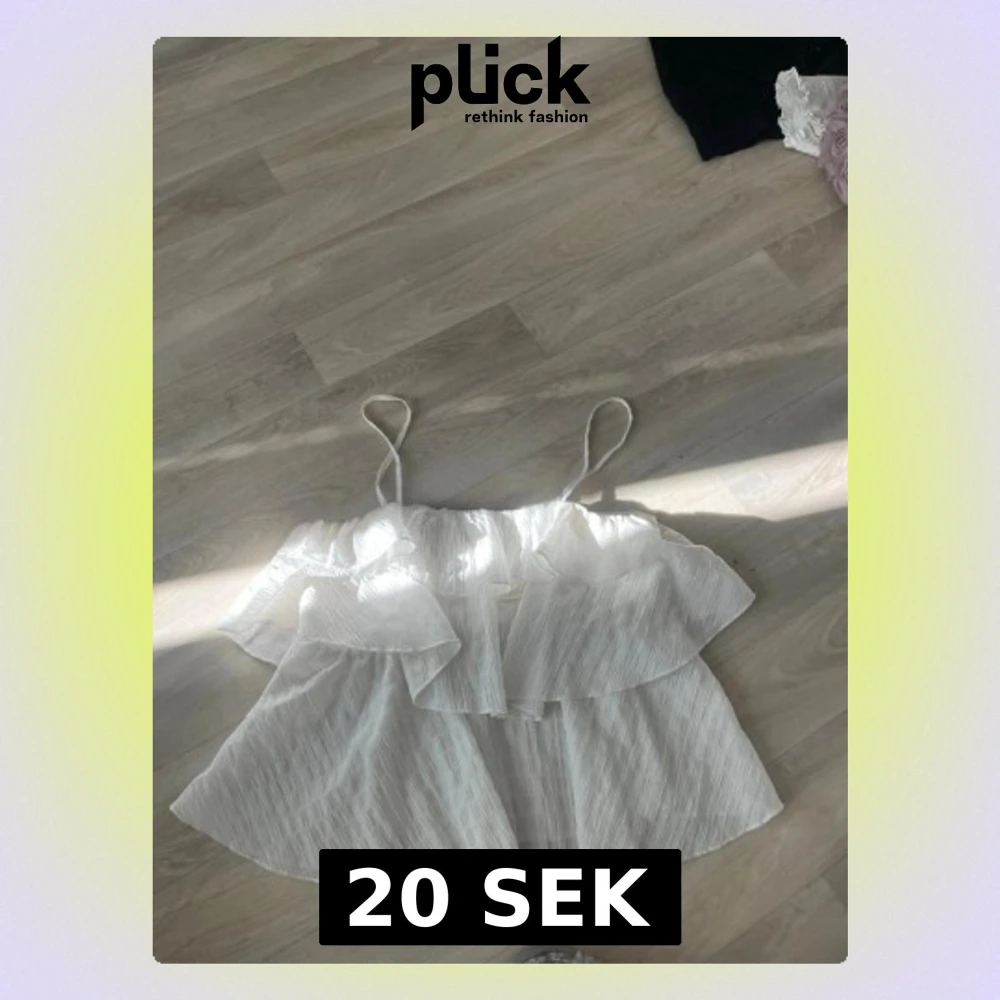 Säljer en vit linnetopp med tunna axelband och volangdetaljer. Toppen är ärmlös och har en luftig, flowy passform som känns perfekt för varma dagar. Materialet är lätt och har en subtil struktur. Passar dig som gillar en feminin och avslappnad stil.