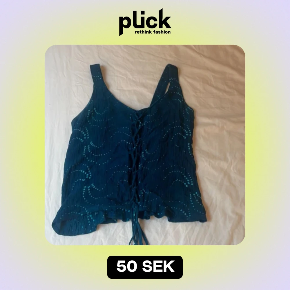 Jättecool top som jag aldrig använder! Köpt secondhand men knappt använt av mig☺️jättefin snörning där fram också! Står one size men passar jättwbra på mig som är xs-s💗dock är den stretchiga så passar säkert m också!