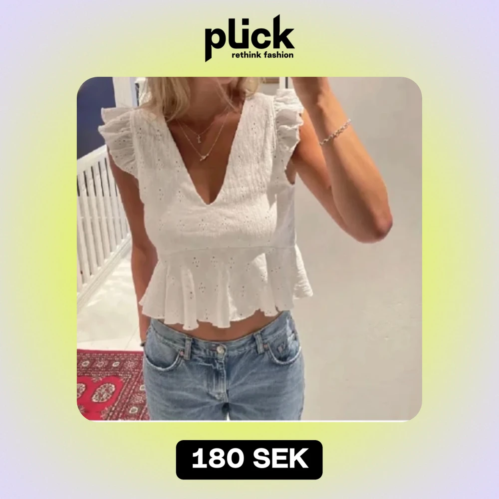 Jättesöt topp i vitt. Köpt på Plick! Säljs då den inte kom till användning💗💗