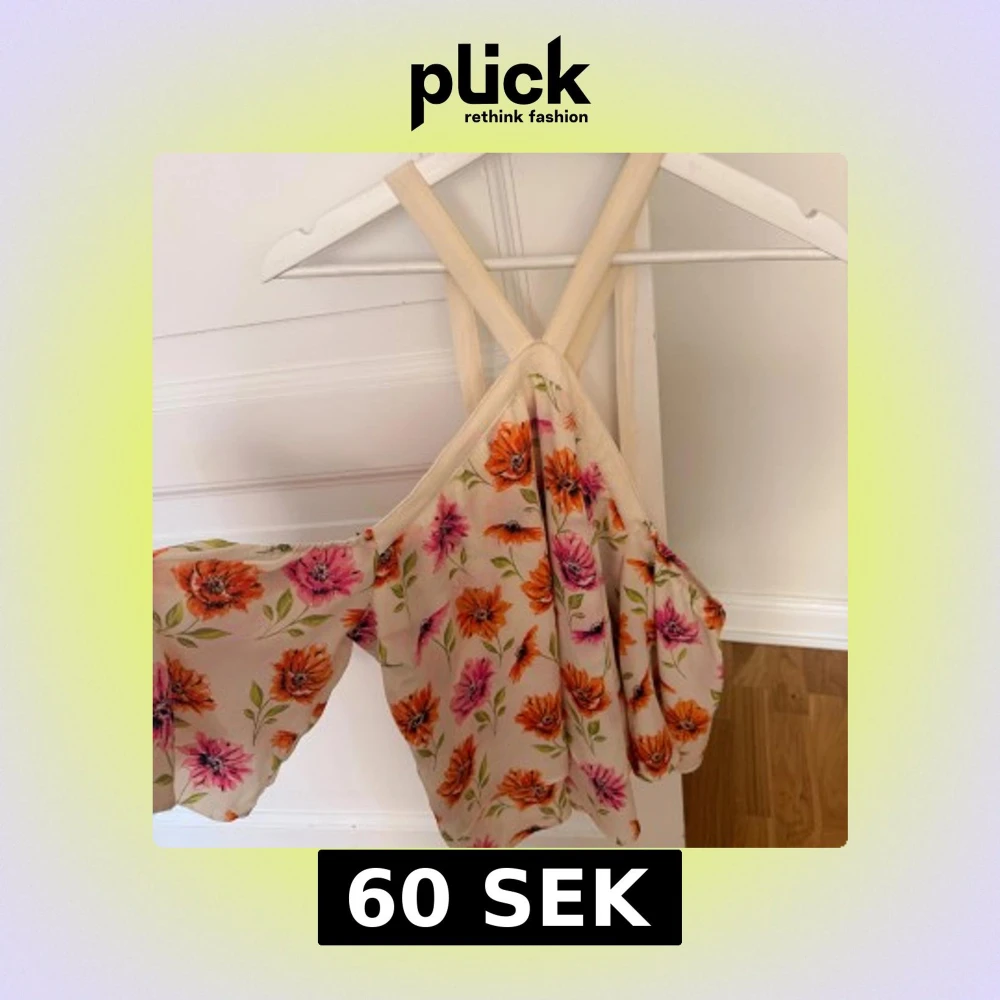 Superfin topp från H&M Divided med blommigt mönster i orange och rosa på en ljusbeige botten. Toppen har vida ärmar, smala axelband som korsas i ryggen och är gjord i ett lätt, luftigt material. Perfekt för sommarens alla tillfällen!