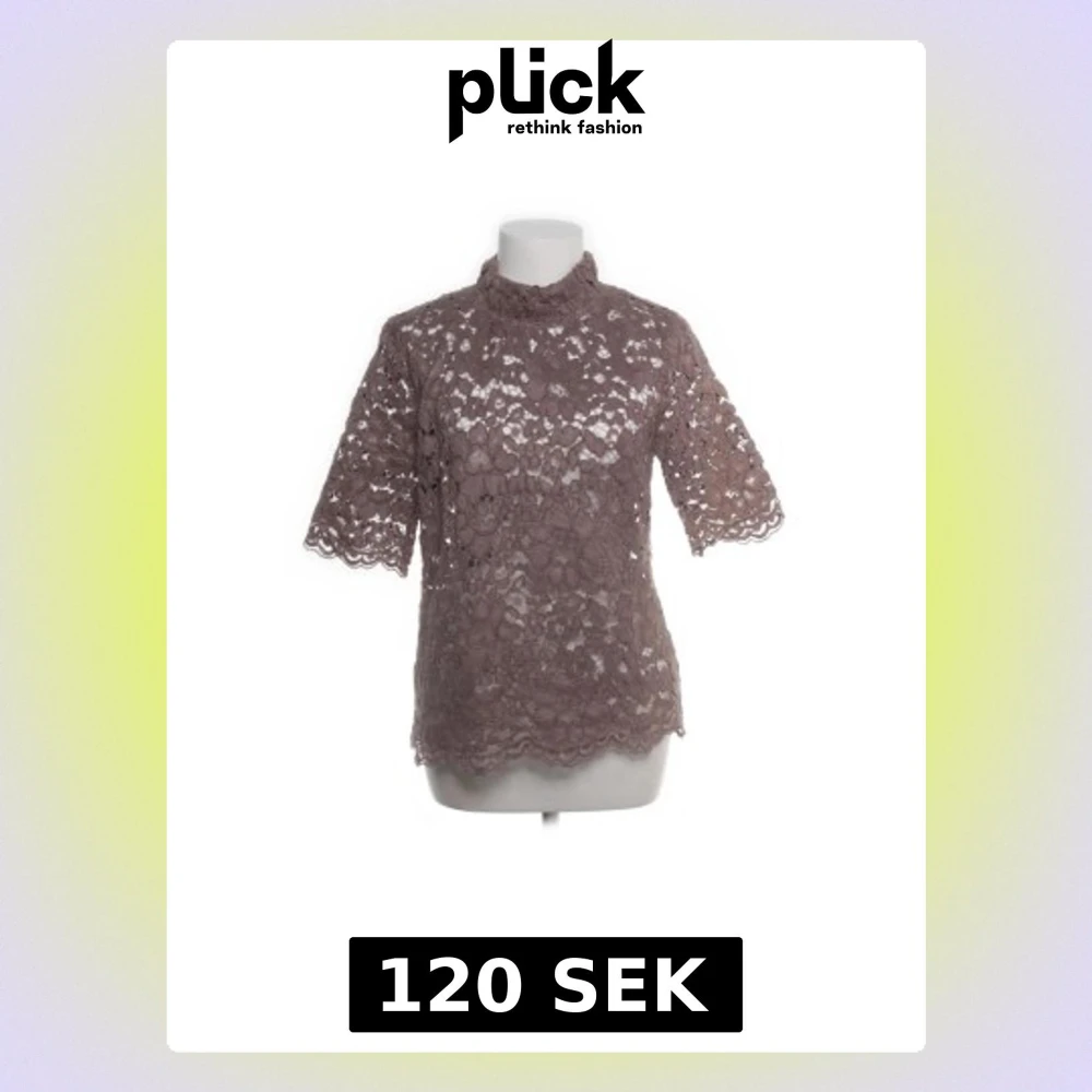 Säljer en brun blus från Gustav med halvpolokrage och vackert blommigt spetsmönster. Blusen har halvlånga ärmar och fina vågiga kanter vid ärmslut och nederkant.